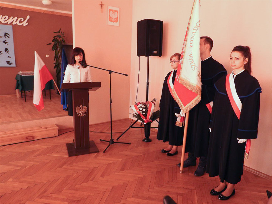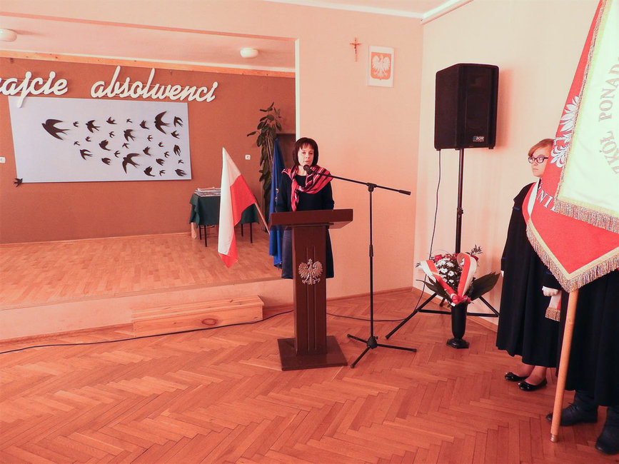 Maturzyści pożegnali się ze sztandarem i patronem Franciszkiem Ratajczakiem, pod pomnikiem którego złożyli kwiaty. Starszych kolegów żegnali też uczniowie młodszych klas. Uroczystość zakończyła część artystyczna, podczas której przewodniczącym klas przekazano podkowy na szczęście.