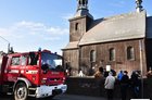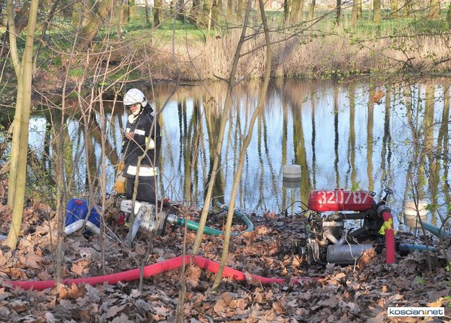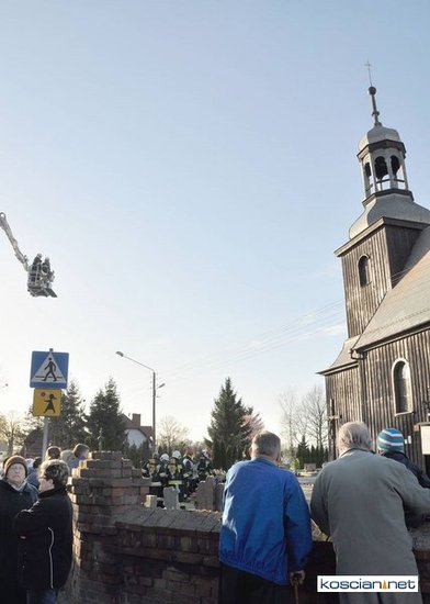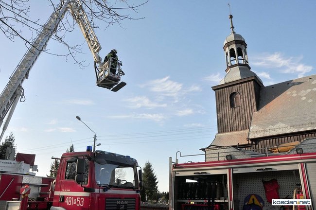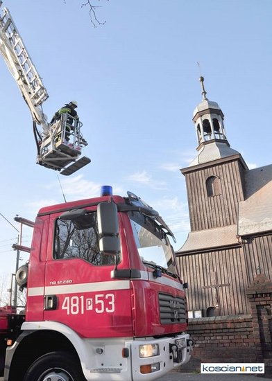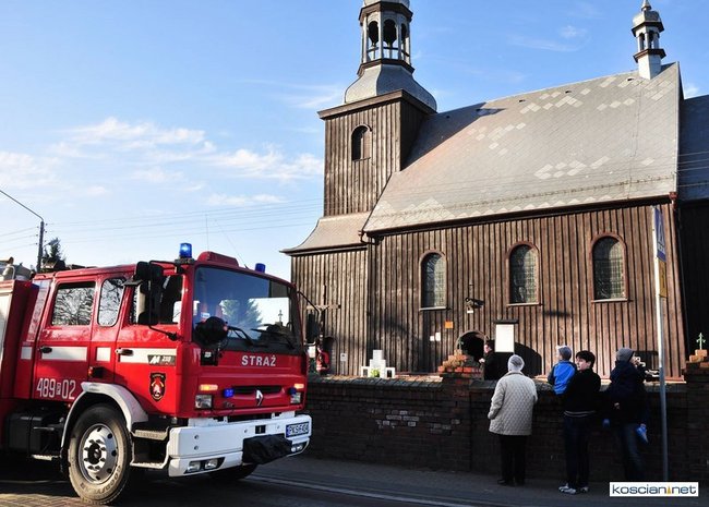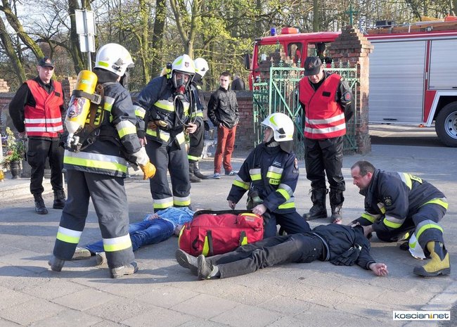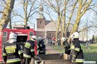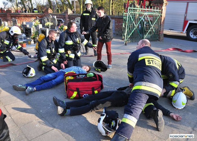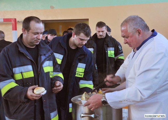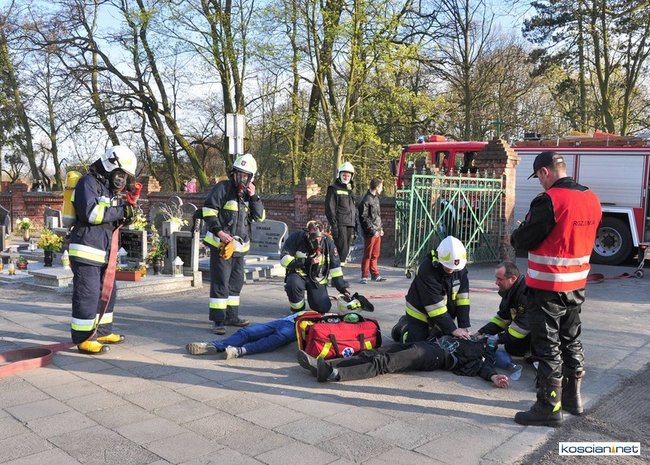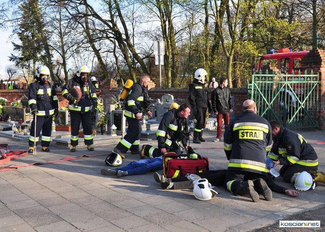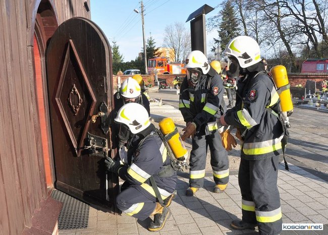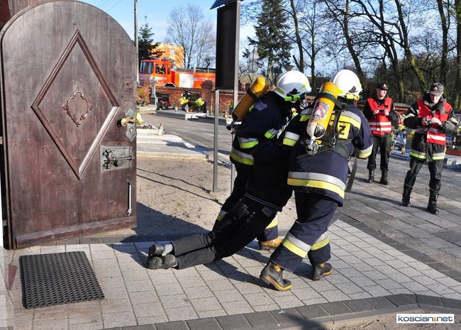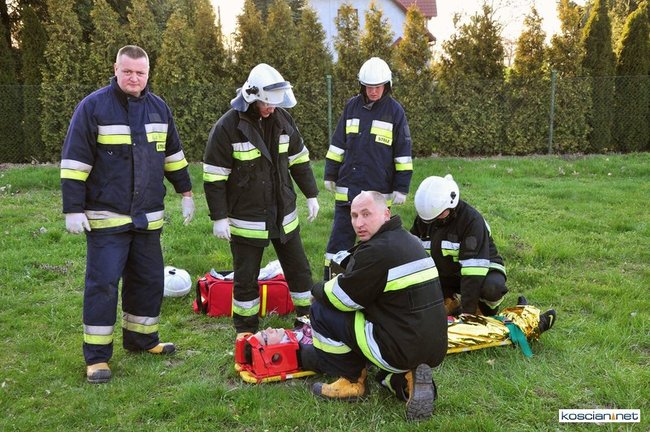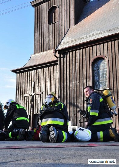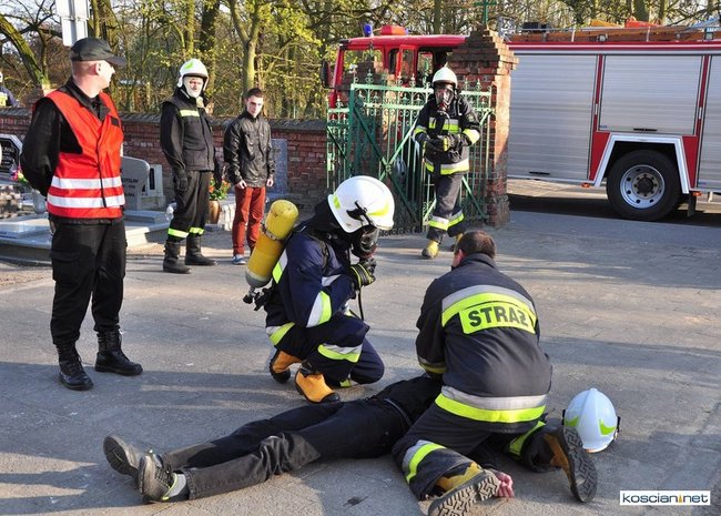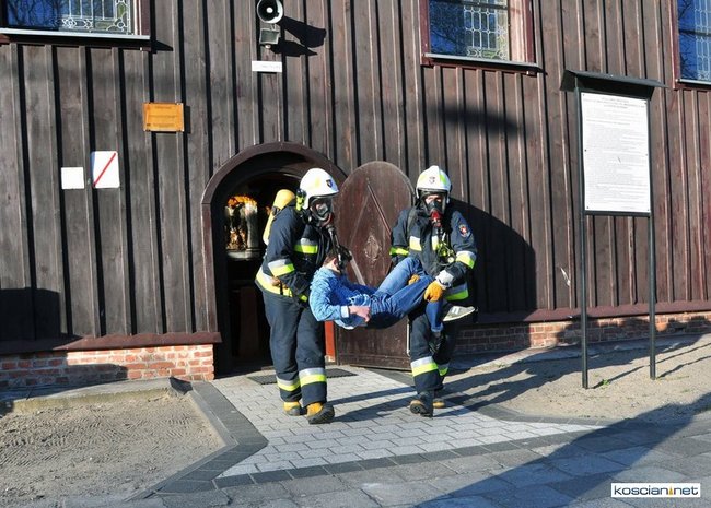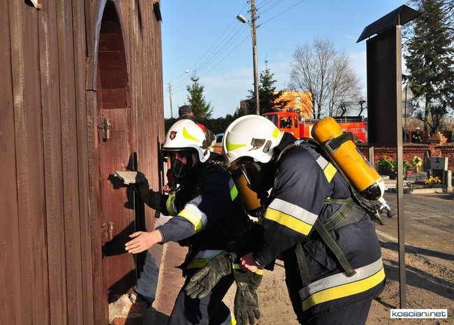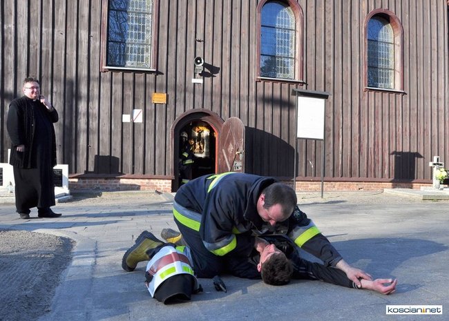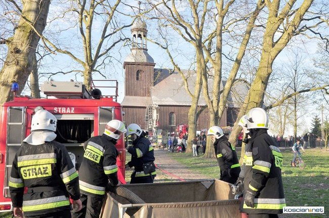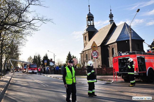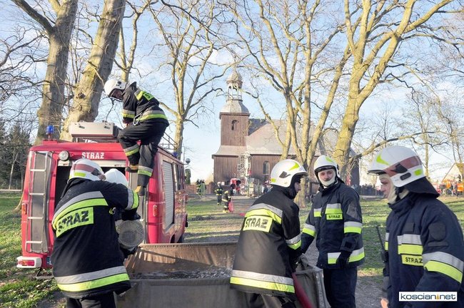 Strażacy sprawdzali i doskonalili swoje umiejętności podczas pozorowanego pożaru drewnianego kościoła w Starym Gołębinie. Ćwiczono między innymi ratowanie ludzi uwiezionych w płonącym kościele oraz budowę linii dostarczania wody na miejsce zdarzenia. Akcję zakończyło spotkanie szkoleniowe przy grochówce.