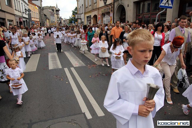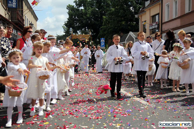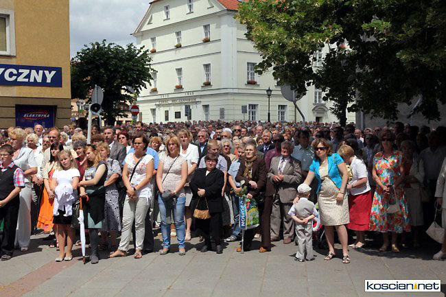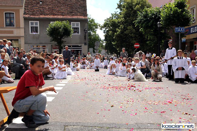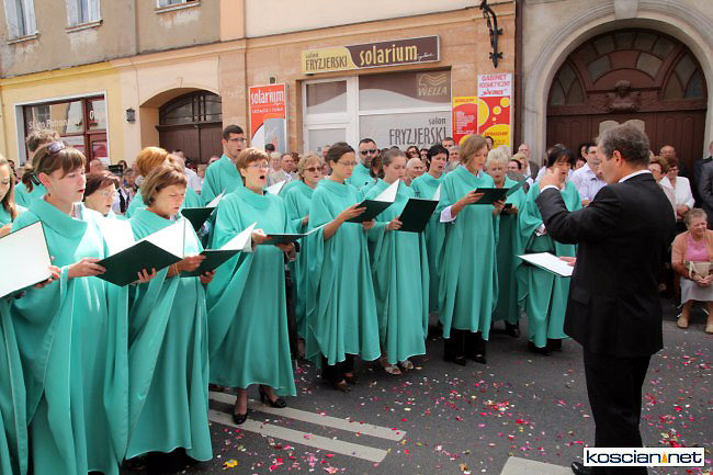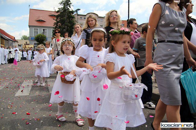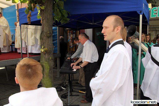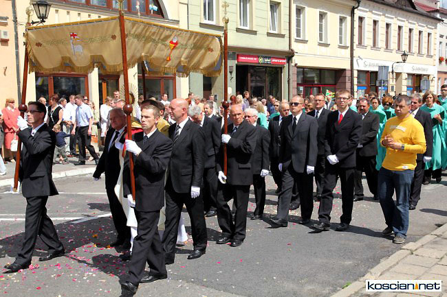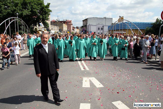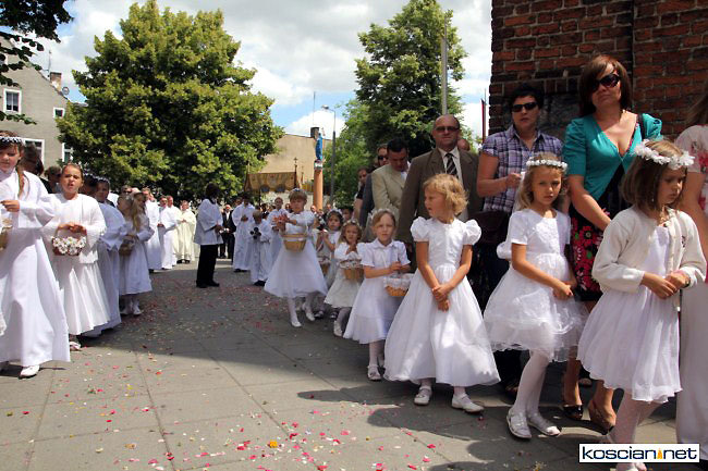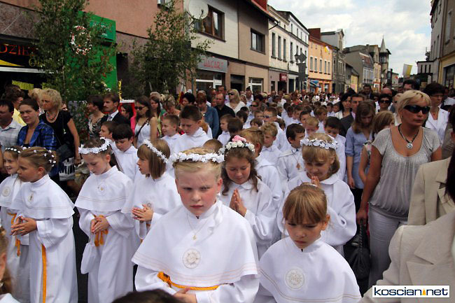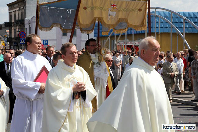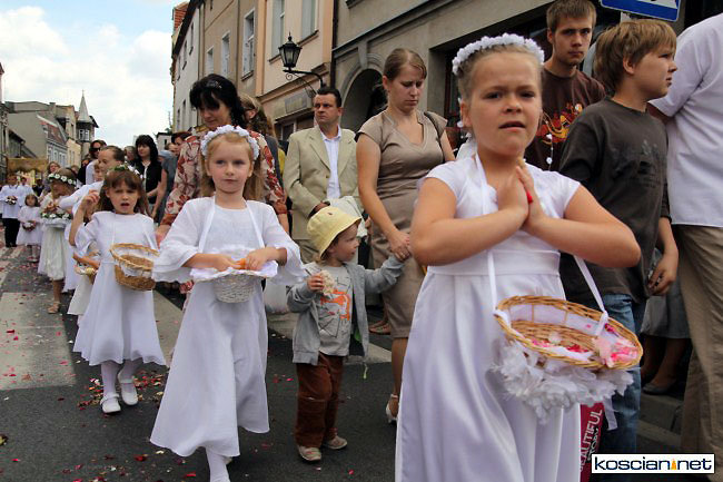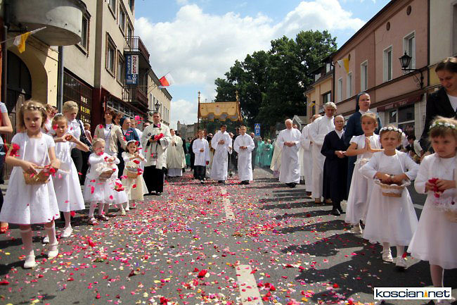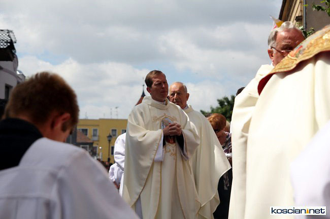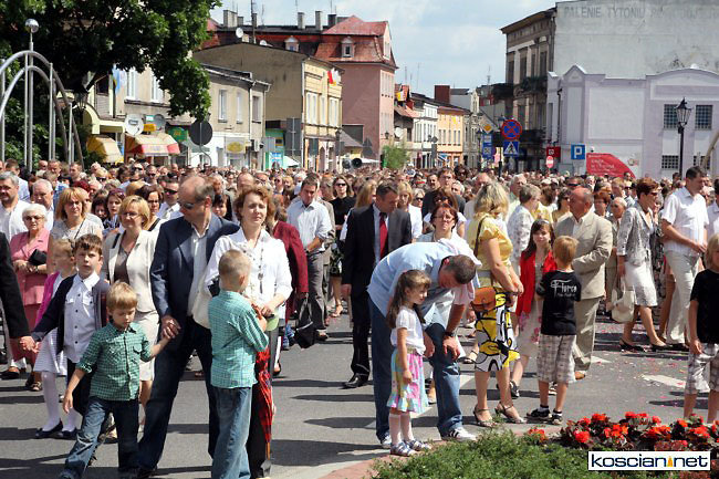 Tegoroczna procesja w Kościanie wyruszyła z kościoła Ducha Świętego i przeszła ul. Piłsudskiego, Szczepanowskiego, Rynkiem i Kościelną do Fary. Na Rynku - przy trzecim ołtarzu - odprawiono mszę