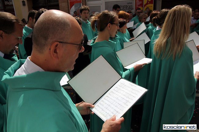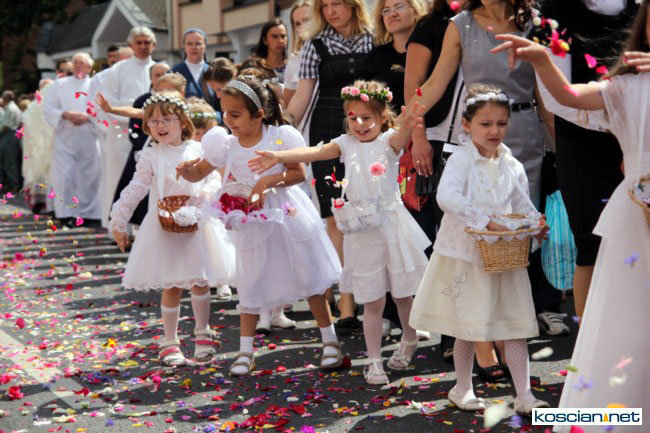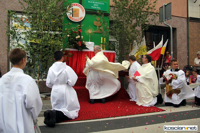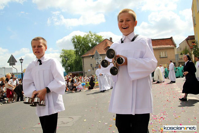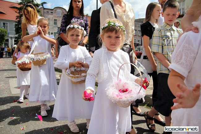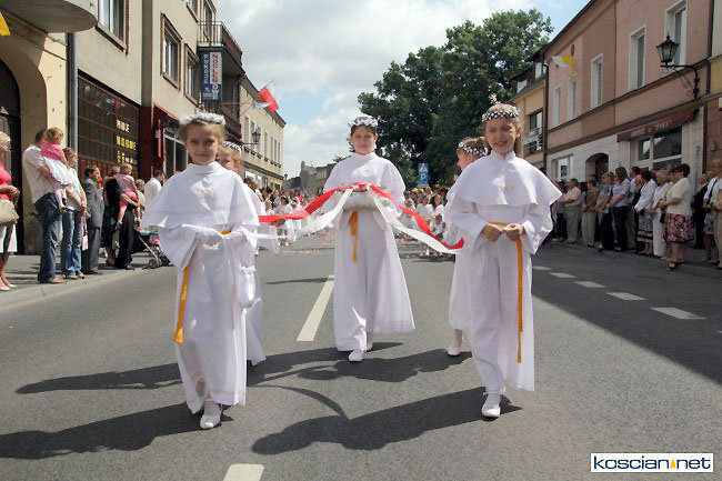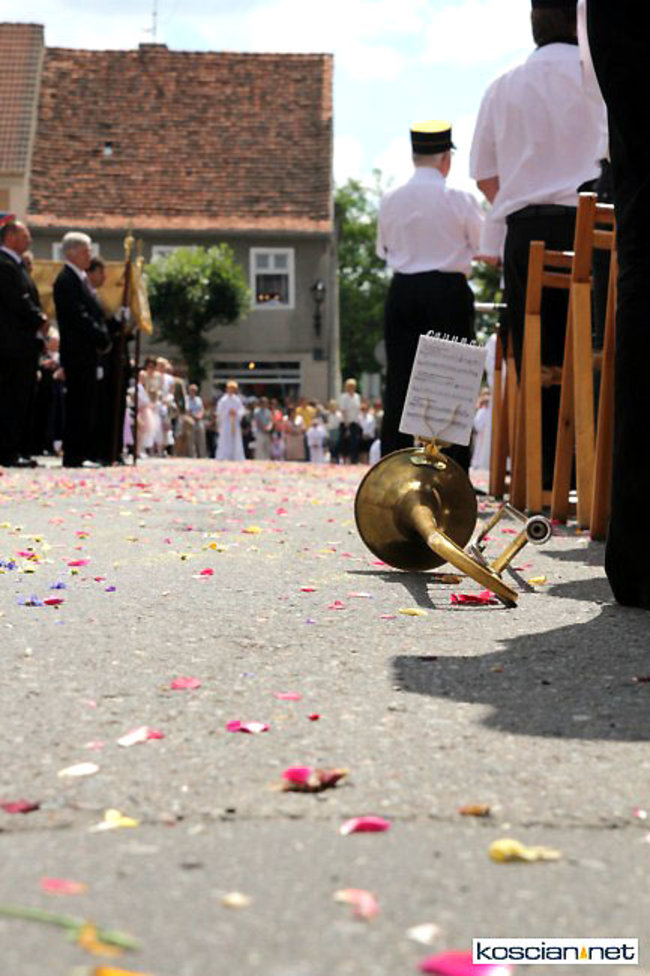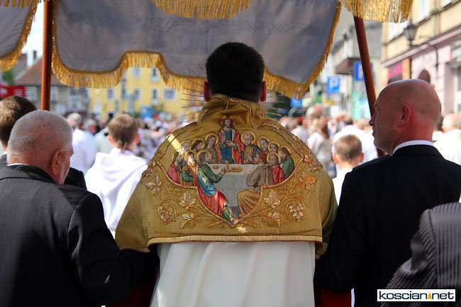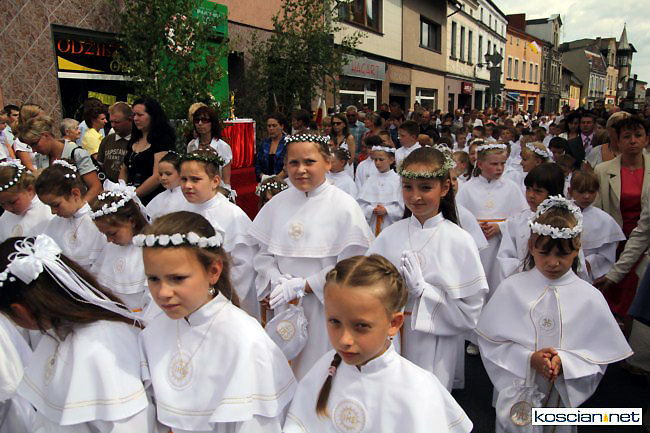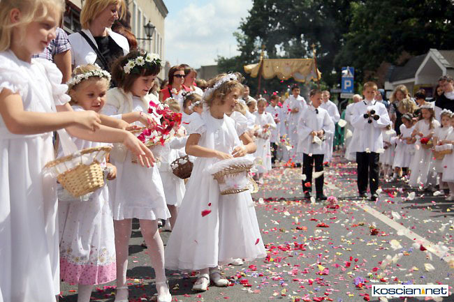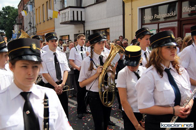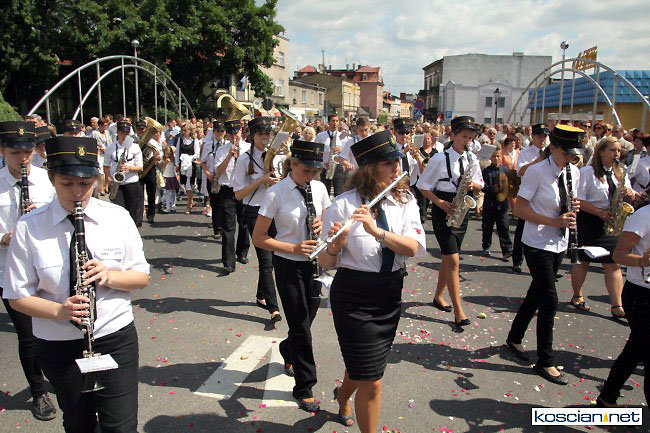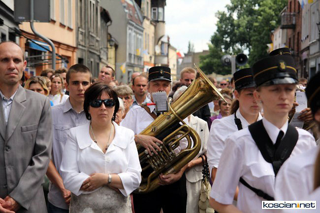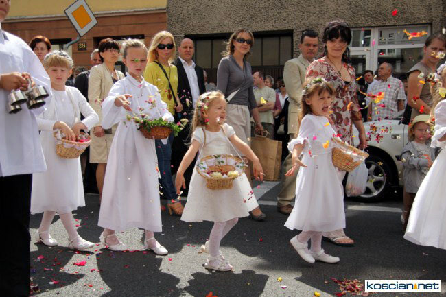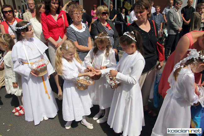 Tegoroczna procesja w Kościanie wyruszyła z kościoła Ducha Świętego i przeszła ul. Piłsudskiego, Szczepanowskiego, Rynkiem i Kościelną do Fary. Na Rynku - przy trzecim ołtarzu - odprawiono mszę