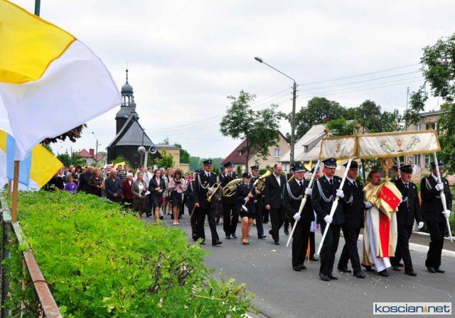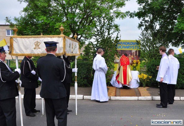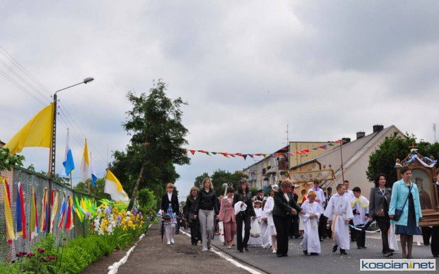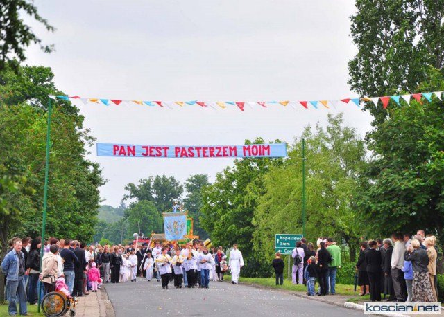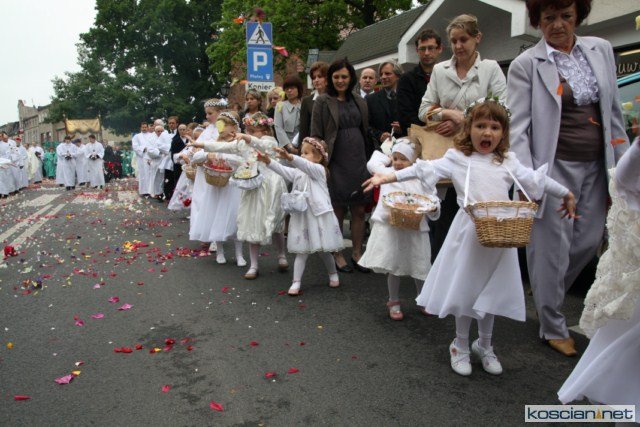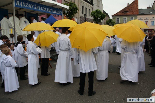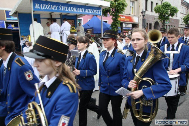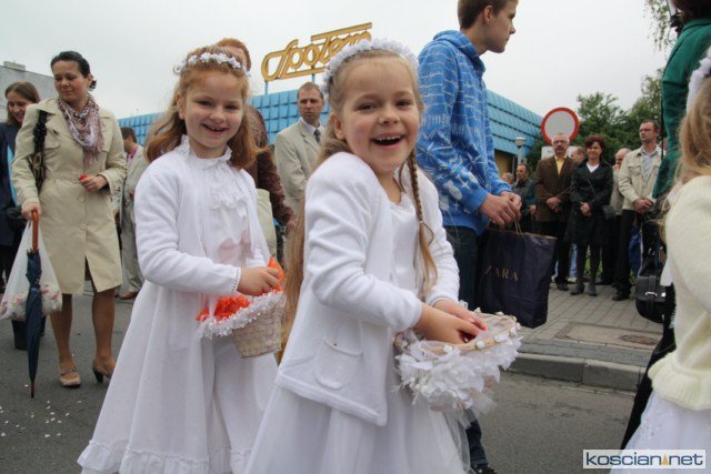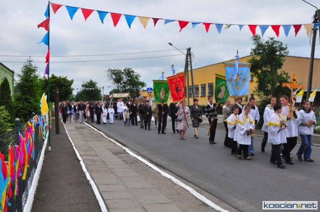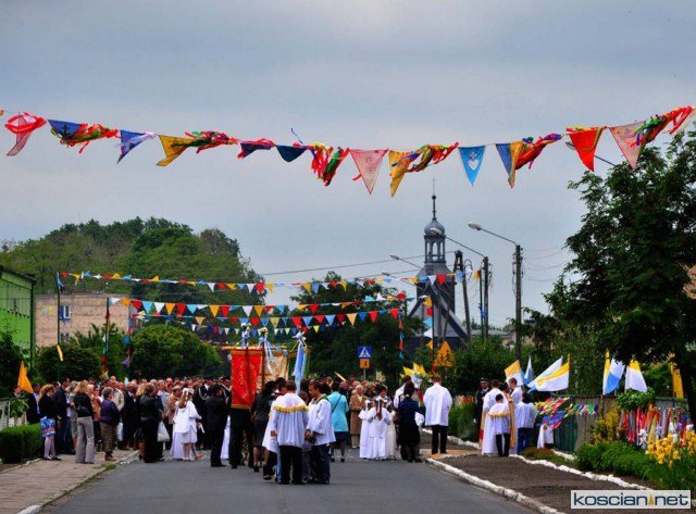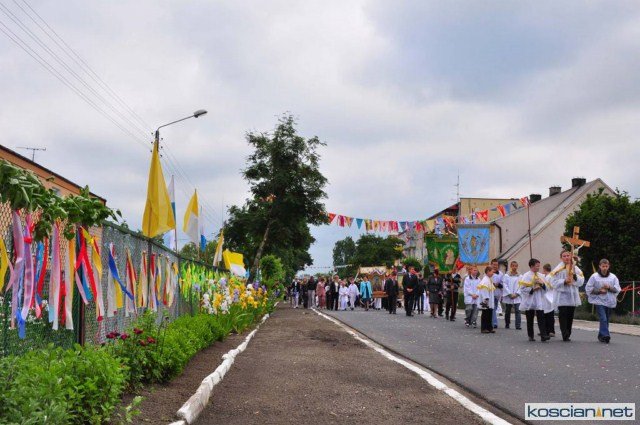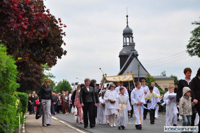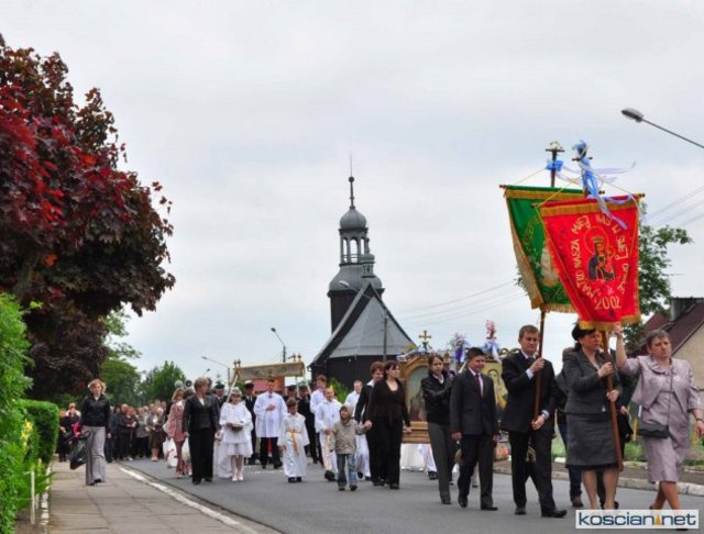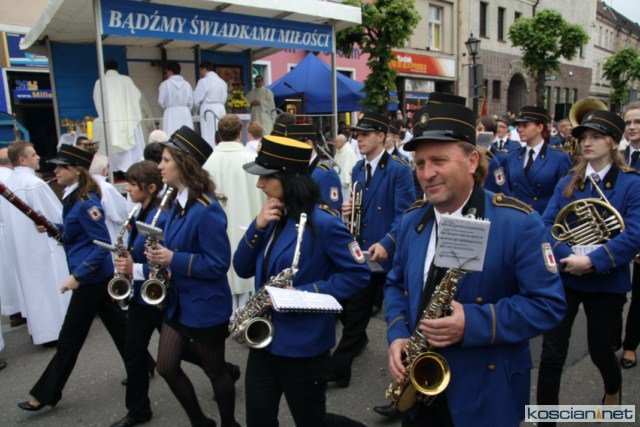 KOŚCIAN : wspólna procesja czterech kościańskich parafii wyruszyła z kościoła Ducha Świętego, ulicą Piłsudkiego przeszła na Rynek, gdzie przy trzecim ołtarzu odprawiono mszę świętą. Następnie ulicami Wrocławską i Kościelną przeszła do kościoła farnego.