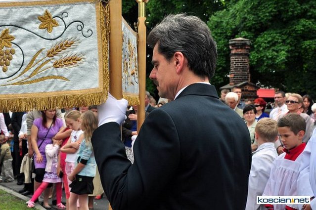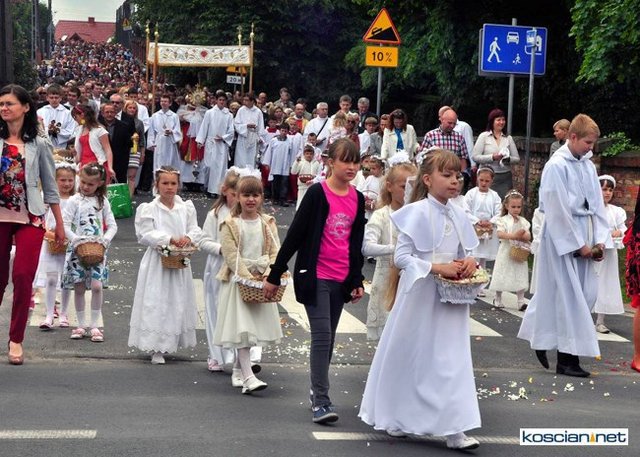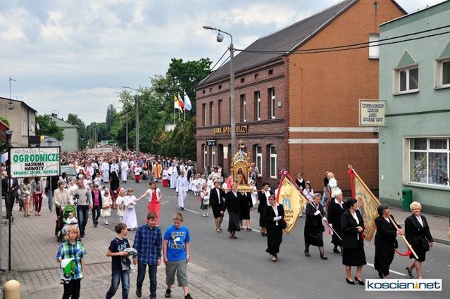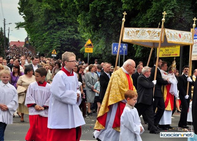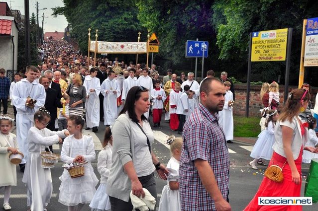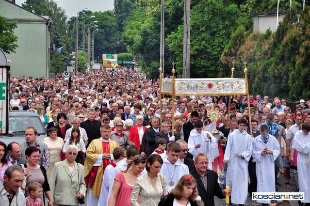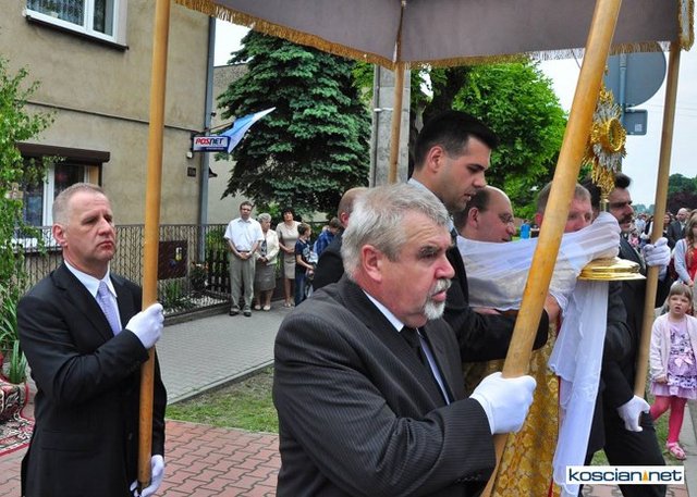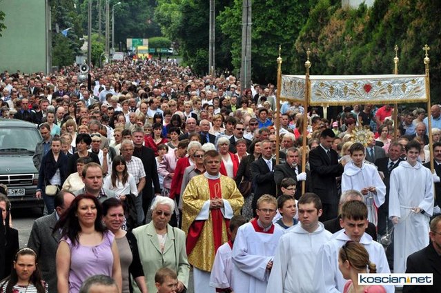 No pięknie. Widać, że dość duży udział wiernych pomimo niestałej pogody. A tak swoją drogą ciekawe, dlaczego nie udostępniono fotografii z innych parafii naszej okolicy chociażby z Wyskoci, Racotu bądź Chryni. Przecież tam też są procesje i to zapewne równie piękne.