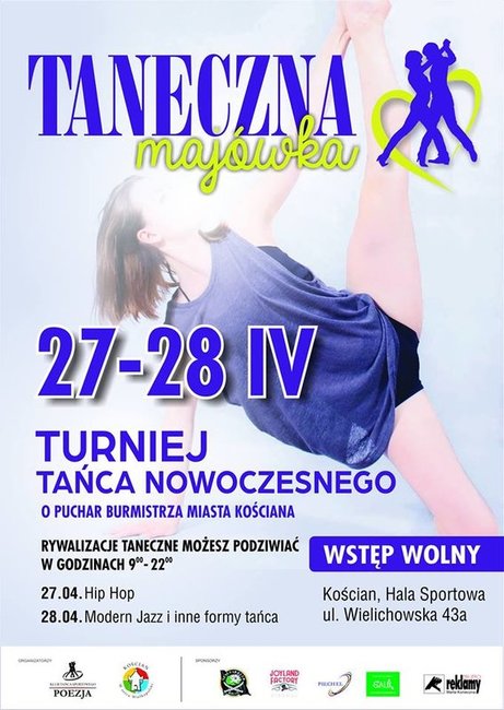 W sobotę i niedzielę (27 i 28 kwietnia) odbędzie się Ogólnopolski Turniej Tańca Nowoczesnego o Puchar Burmistrza Miasta Kościana. Areną sportowych zmagań tancerzy będzie hala przy ZSP im. Franciszka Ratajczaka. Codziennie rywalizacja zaczynać się będzie o godz. 9 i planowo kończyć o godz. 19.