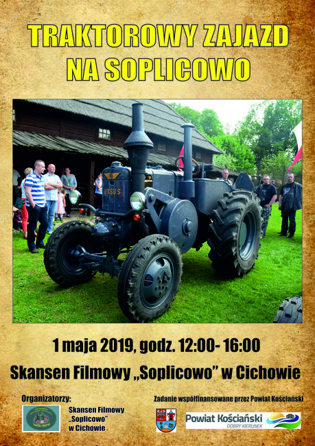 Trzy propozycje na majowy weekend przygotował Skansen Filmowy „Soplicowo” w Cichowie. W Święto Pracy odbędzie się tam V Zlot Traktorów Zabytkowych. Impreza rozpocznie się o godz. 11. 2 maja upłynie pod znakiem kulinariów. Od godz. 12 serwowana będzie dziczyzna z polskich kniei. W Święto Konstytucji 3 Maja odbędą się Towarzyskie Zawody Konne w Skokach. Rywalizacja rozpocznie się o godz. 11.