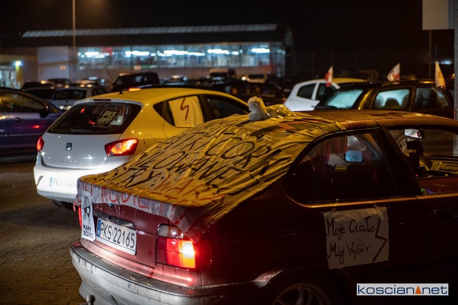 W piątek, 6 listopada, przez ulice Kościana przejechał drugi protest samochodowy będący jednocześnie siódmą manifestacją przeciwko rządzącej partii i orzeczeniu Trybunału Konstytucyjnego ograniczającego prawo do aborcji. Z parkingu nieczynnego marketu Intermarche na ulice miasta wyjechało ponad sześćdziesiąt samochodów osobowych i śmieciarka z wymalowanym symbolem Ogólnopolskiego Strajku Kobiet.