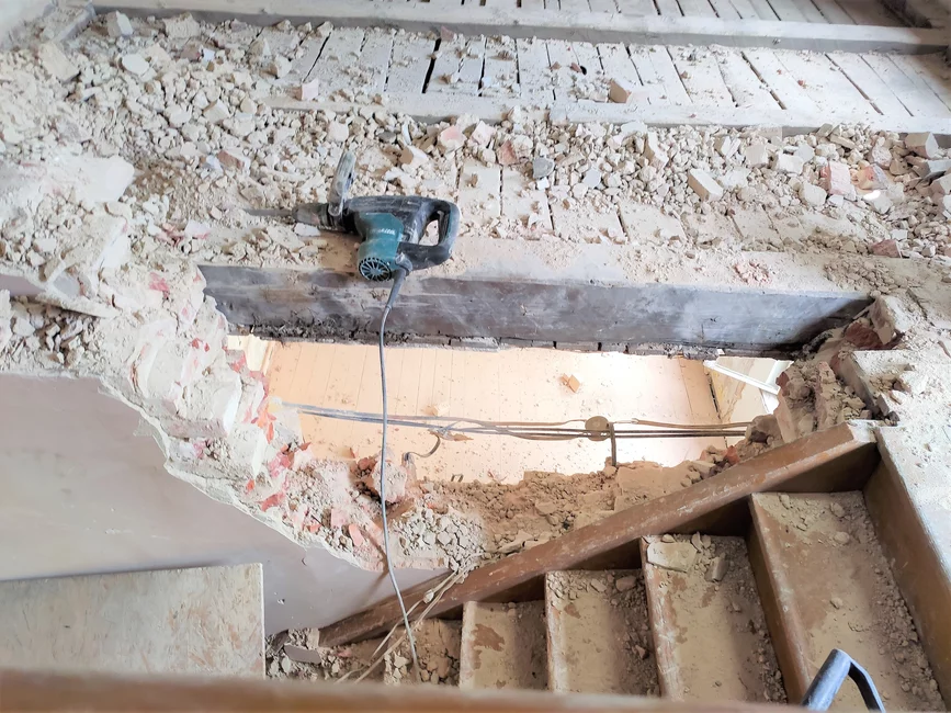Trwają prace budowlane związane z zaadaptowaniem na potrzeby Środowiskowego Domu Samopomocy narożnikowej kamienicy przy ul. Piłsudskiego i Grodziskiej w Kościanie.