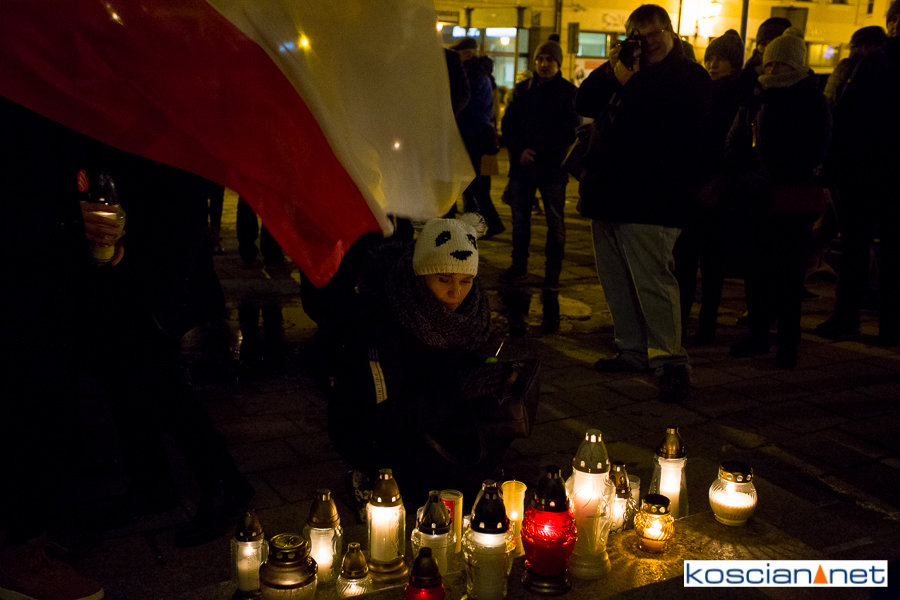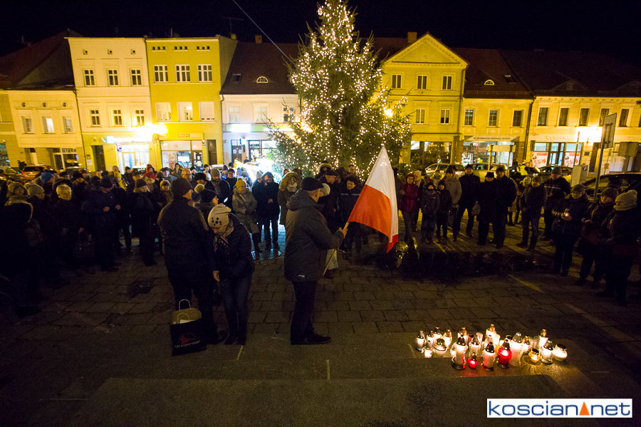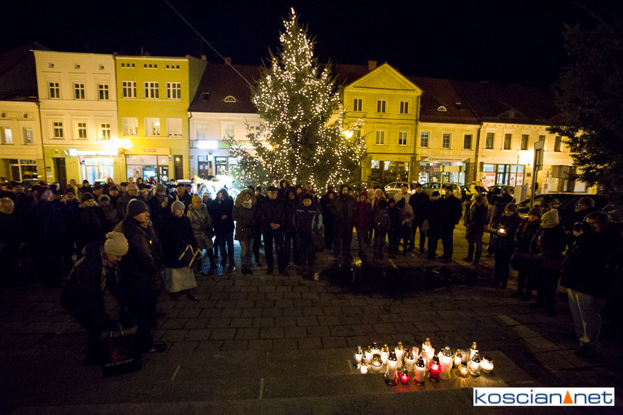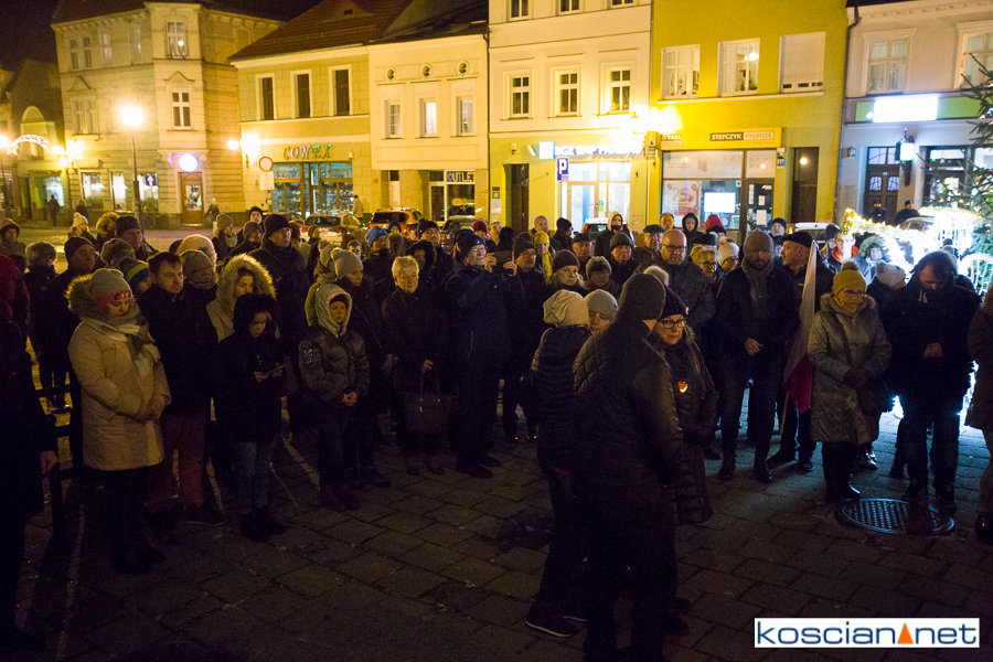 Tak jak w setkach miast w Polsce, o godzinie 18, na kościańskim Rynku zapanowała cisza. Kilkadziesiąt osób, pod biało-czerwoną flagą, wzięło udział w niemym proteście, przeciwko nienawiści i przemocy, oddając jednocześnie hołd zmarłemu dziś Prezydentowi Gdańska Pawłowi Adamowiczowi.