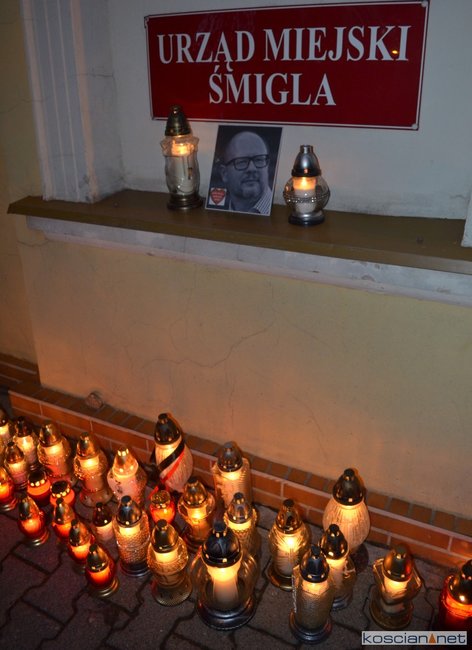 Znicze zapłonęły także przed Urzędem Miejskim Śmigla, gdzie o godzinie 18.00 w ciszy oddano hołd zamordowanemu samorządowcowi.