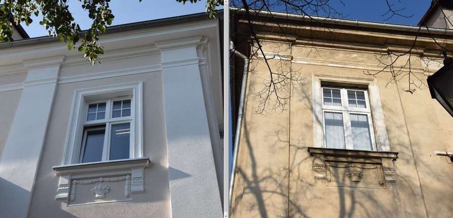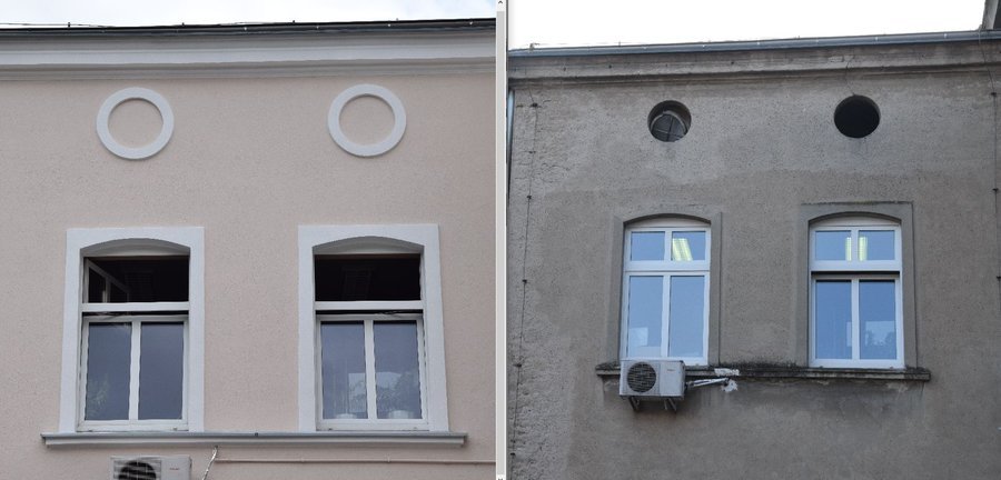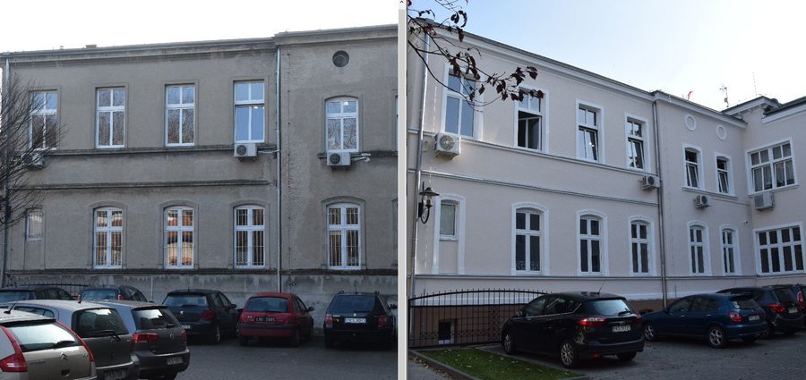 Porównajcie zdjęcia siedziby władz miejskich i powiatowych przed i po remoncie elewacji.