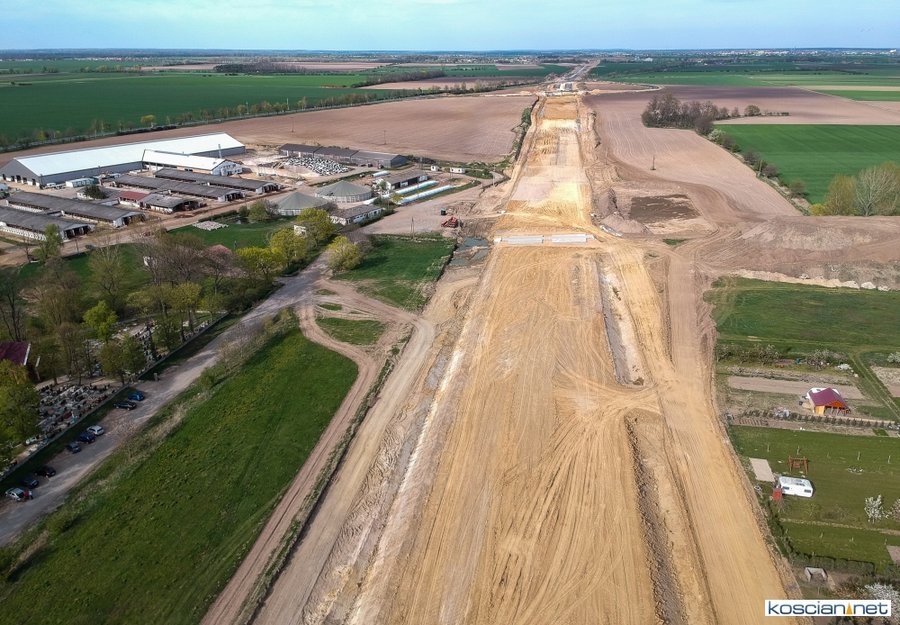 Aby zobaczyć jak wygląda największy plac budowy w historii Ziemi Kościańskiej po raz kolejny przelatujemy nad powstającą ekspresówką. Zdjęcia z drona autorstwa Piotra Nędzewicza ilustrują aktualny stan prac.