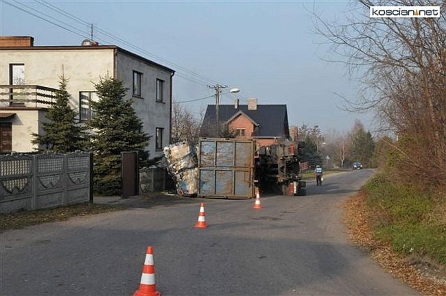 W poniedziałkowe południe w Brońsku przewrócił się samochód ciężarowy z przyczepą. Do zdarzenia doszło w terenie zabudowanym na zakręcie drogi. Na szczęście nikt nie ucierpiał. 56-letni kierowca z Lubinia za niedostosowanie prędkości został ukarany mandatem.