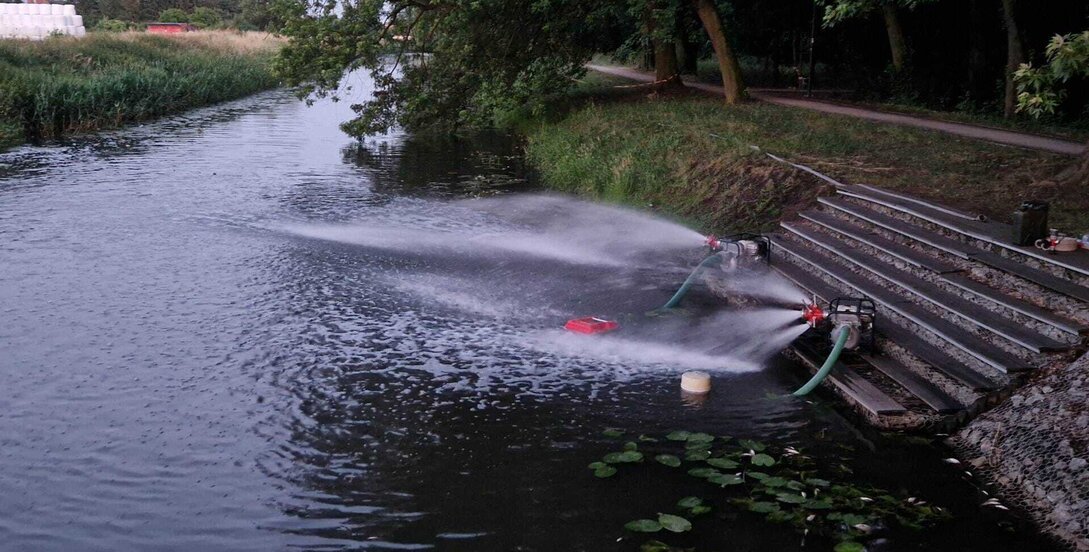 Po raz kolejny w Kościańskim Kanale Obry pojawiła się przyducha spowodowana wysoką temperaturą i zmniejszeniem rozpuszczalności tlenu w wodzie. Burmistrz zadysponował OSP do akcji napowietrzania wody.