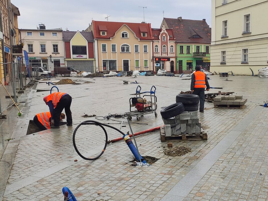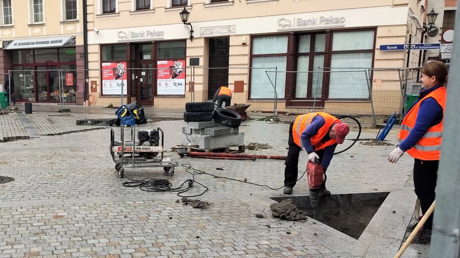 Na Rynku rozpoczęto porządkowanie placu budowy i przygotowania do nasadzenia drzew. Wokół głównego placu w mieście posadzonych zostanie 16 drzew, po 4 na każdej pierzei.