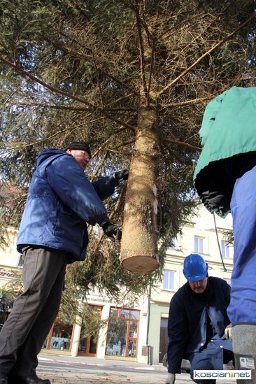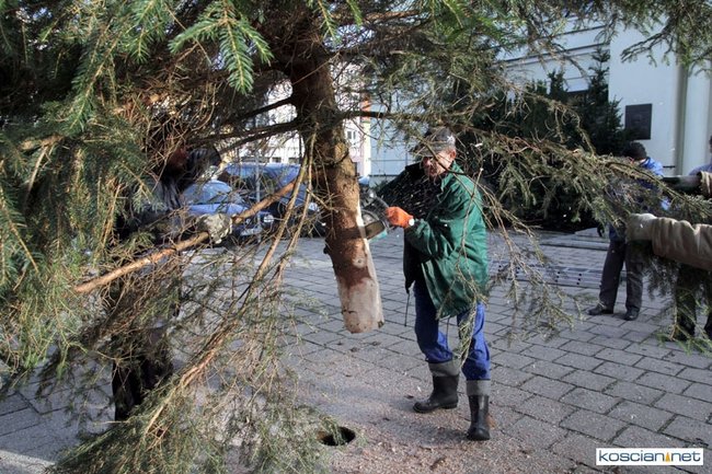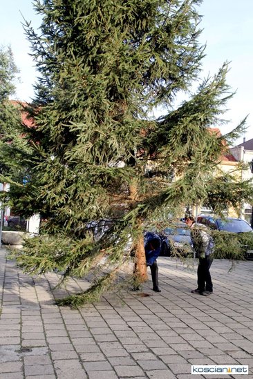 W tym roku ekipie z KOK-u pomagali pracownicy Starostwa Powiatowego, Zarządu Dróg Powiatowych oraz Miejskiego Zakładu Gospodarki Mieszkaniowej i Dróg. Drugi rok z rzędu bezpłatną pomoc zaoferowała firma Ewmar, której dźwig postawił choinkę do pionu. Drzewko stać będzie na Rynku do 2 lutego.