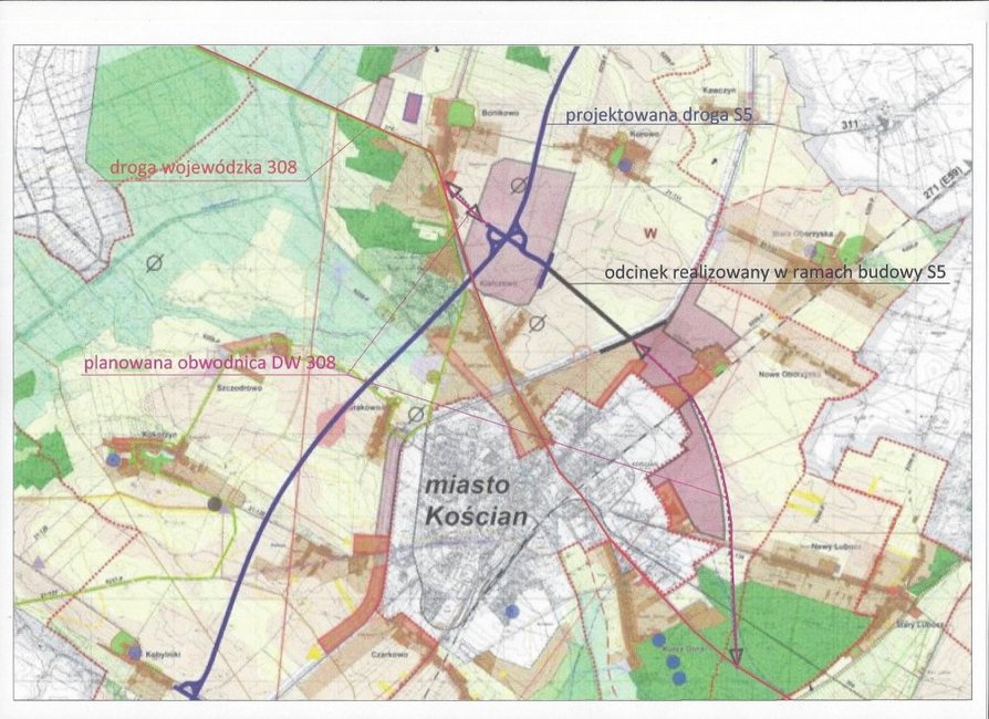 Kościan przekaże samorządowi województwa dotację na opracowanie dokumentacji obwodnicy miasta w ciągu drogi nr 308.