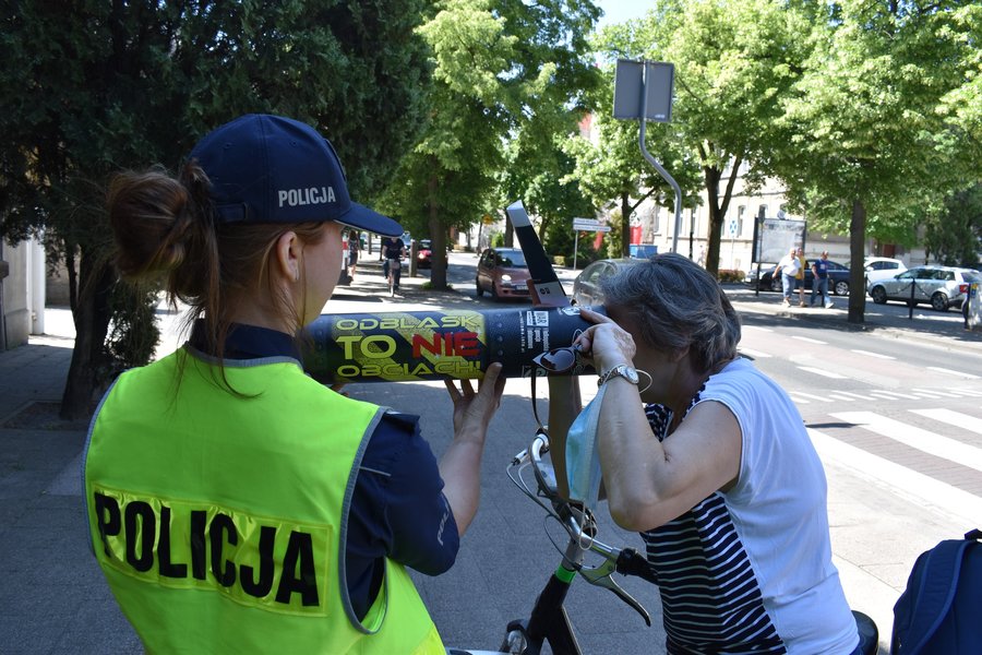 Policjanci prowadzili rozmowy z pieszymi, rowerzystami i kierującymi pojazdami, wręczając im ulotki zawierające najważniejsze zmiany dotyczące pieszych, kierujących oraz korzystania z różnych środków transportu, w tym hulajnóg i rolek. Chętne osoby mogły przekonać się, że odblask zapewnia widoczność po zmierzchu dzięki specjalnemu symulatorowi odblasku ,,Odblask to NIE obciach”.