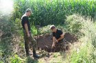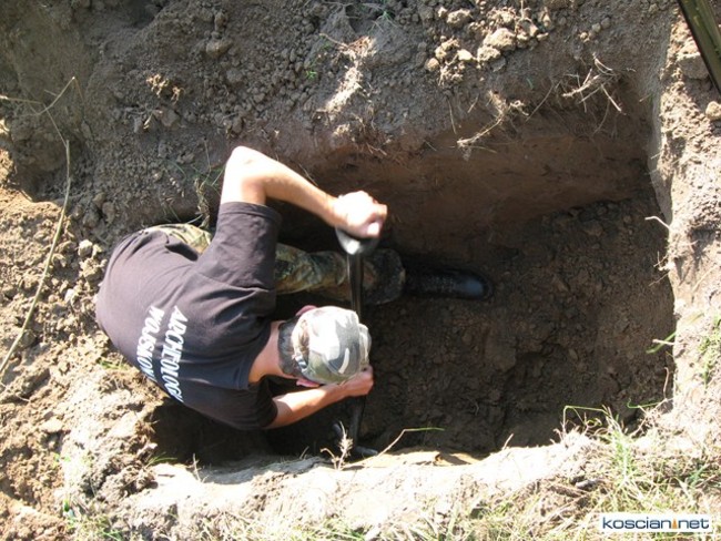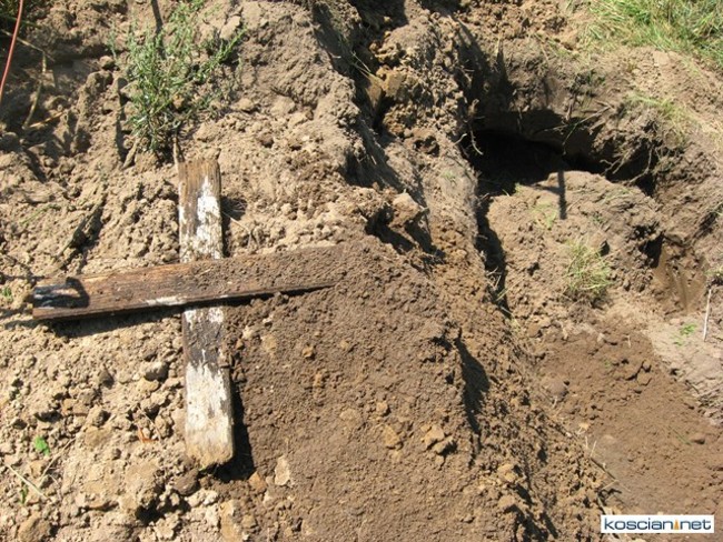 - Odkopaliśmy jedynie drewniany krzyż, który musiał kiedyś stać na mogile. Struktura geologiczna ziemi była w tym miejscu wymieszana co świadczy, że był tu kiedyś dół – mówi Paweł Gruszka.