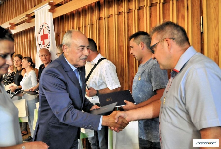 Odznaczenia wręczyli: Bogusław Kostyk i Robert Skrzypczak, prezes Oddziału Rejonowego PCK w Kościanie. Wyróżnieni odebrali też gratulacje i upominki od starosty Bernarda Turskiego i przewodniczącego kościańskiej rady miejskiej Piotra Ruszkiewicza.