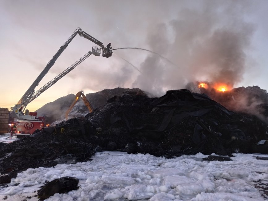 Efekt gaśniczy piany, przerzucanie materiałów, dotarcie do zarzewi ognia w głębi składowiska i ich stłumienie pozwoliło na lokalizację pożaru o godz. 3.16. Następnie rozpoczęto przewożenie części nadpalonych odpadów na sąsiedni plac, gdzie powtórnie przelewano je wodą. Podczas działań wykorzystano trzy ładowarki właściciela zakładu do przerzucania składowanych materiałów, co umożliwiło strażakom dotarcie od zarzewi ognia wewnątrz sterty. Kolejno sprawdzono pożarzysko i podjęto decyzjęo zakończeniu działań gaśniczych i rozpoczęciu dozorowania pogorzeliska.