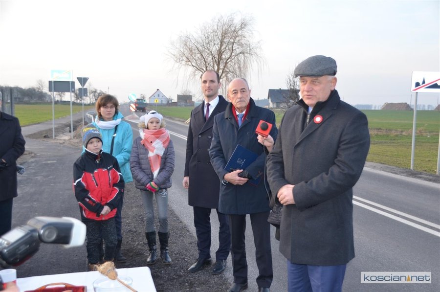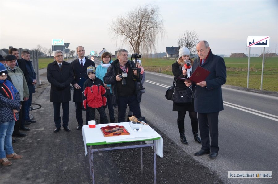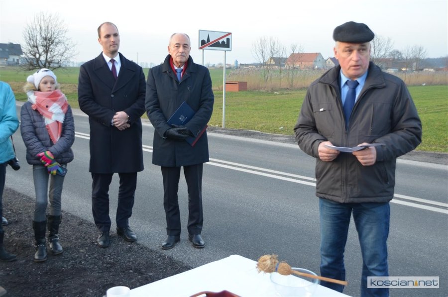 W środowej uroczystości uczestniczyli samorządowcy powiatu kościańskiego, gminy Czempiń i gminy Kościan. Starosta Bernard Turski podziękował wykonawcy robót firmie Drogbud z Gostynia, włodarzom gminy Kościan i gminy Czempiń za współpracę podczas realizacji inwestycji, a mieszkańcom za cierpliwość. Przecięto symboliczną wstęgę, a nowo otwartą drogę poświęcił ks. Czesław Bartoszewski.
