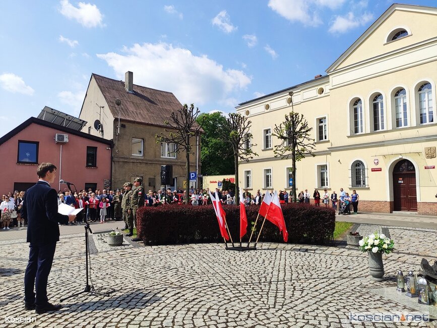 W okolicznościowym wystąpieniu burmistrz Piotr Ruszkiewicz przypomniał historię uchwalenia Konstytucji 3 Maja, jej twórców związanych z Wielkopolską i Ziemią Kościańską oraz znaczenie tego aktu dla kolejnych pokoleń.