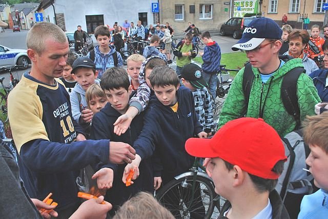 Około 200 osób wyruszyło dziś na trasę VI Rajdu Rowerowego połączonego z II Rajdem Karola. Rowerzyści w asyście policji i motocyklistów z Grupy Motocyklowej ,,Stop Śmierci’’ przejechali Pelikan, Kokorzyn, Krzan do Kotusza. Niestety, przez całą drogę cyklistom towarzyszyła mżawka i silny wiatr. W imprezie wzięły udział zorganizowane grupy z 10 szkół w Kościanie, Starych Oborzyskach, Konojadzie, Starym Luboszu, a także cykliści z Grupy Rowerowej Jana Pawła II, poznańskiego UAM i Kościańskiego Uniwersytetu Trzeciego Wieku. Wszyscy uczestnicy rajdu otrzymali światełka odblaskowe ufundowane przez hurtownię rowerów ze Śremu. Na Pl. Niezłomnych pod pomnikiem Jana Pawła II rowerzyści złożyli wiązankę kwiatów, zapalili znicz i modlili się w intencji beatyfikacji Papieża Polaka. Zanim grupa w policyjnej asyście ruszyła na trasę, przejeżdżając przez Pl. Niezłomnych, ul. Targową, Dembowskiego, Pl. Wolności, ul. Kilińskiego, Pl. Paderewskiego, ul. Piaskową i Wielichowską, cykliści zostali poświęceni przez ks. Czesława Małychę.