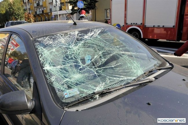 Do zdarzenia doszło o godzinie 13.05. Jadąca rowerem po chodniku 71-letnia mieszkanka Kościana chcąc przejechać na drugą stronę ulicy Śmigielskiej wjechała wprost pod koła prawidłowo jadącego samochodu kia rio prowadzonego przez 67-letniego kościaniaka. Rowerzystkę ze złamanym biodrem i obojczykiem przewieziono do szpitala. Uczestnicy zdarzenia byli trzeźwi.