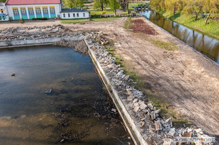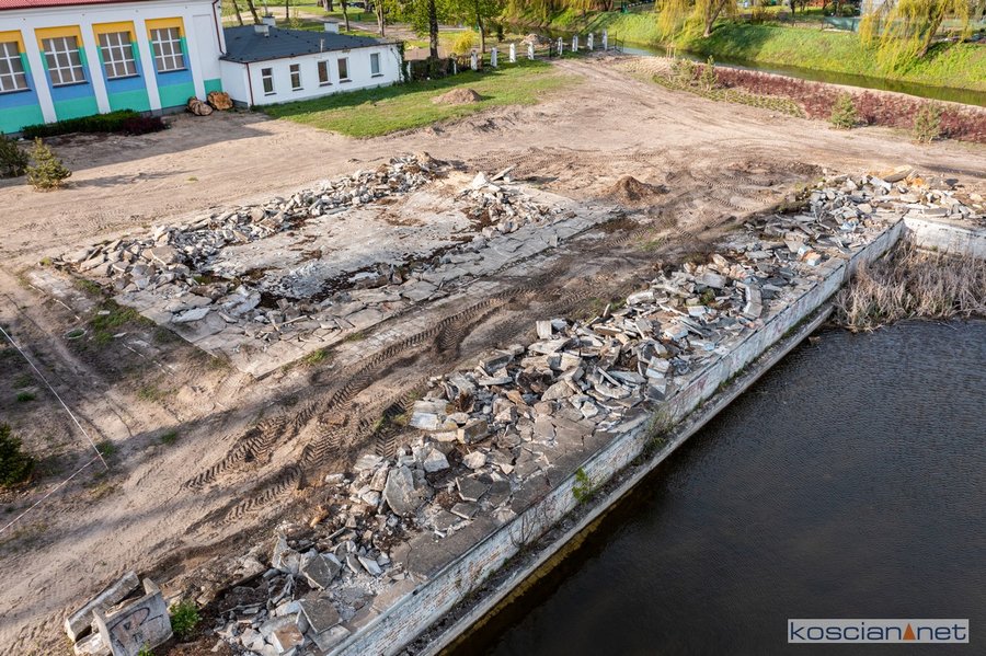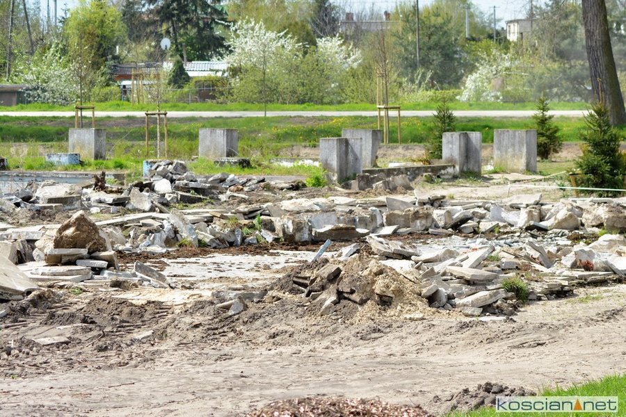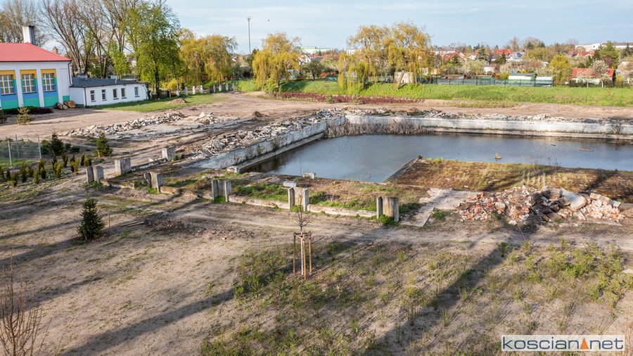 Prace prowadzone są w ramach szóstego etapu budowy kościańskiego traktu rekreacyjnego. Zakres prac obejmuje całkowitą rozbiórkę brodzika i częściową rozbiórkę elementów basenu pływackiego. Roboty wykonuje firma PHUT Krzysztof Nadobnik z Kiełczewa. Prace rozbiórkowe potrwają cztery tygodnie.