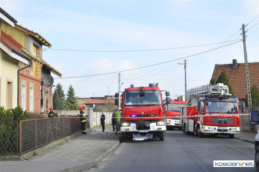 Dziś, o godzinie 8.27 straż pożarna przyjęła zgłoszenie o pożarze w domu jednorodzinnym przy ulicy Marii Skłodowskiej – Curie w Kościanie. Na miejsce wysłano strażaków z Państwowej Straży Pożarnej w Kościanie i miejscowej OSP, zespół ratownictwa medycznego, pogotowie energetyczne i gazowe.