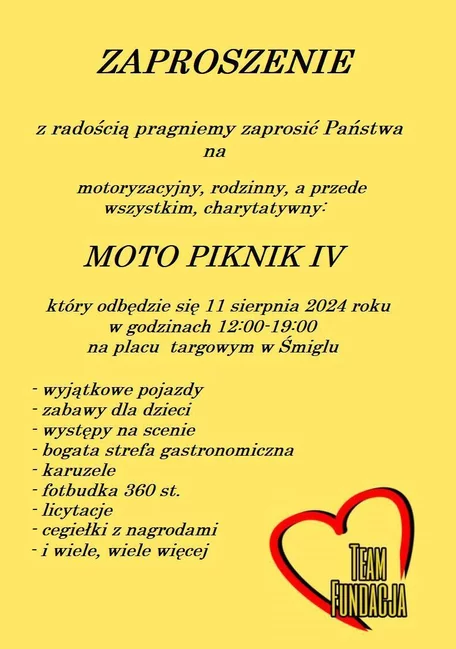 Śmigielskie Moto Pikniki to imprezy charytatywne organizowane przez Team Fundacja. To grupa przyjaciół, których połączyła chęć pomagania oraz pasja do motoryzacji.