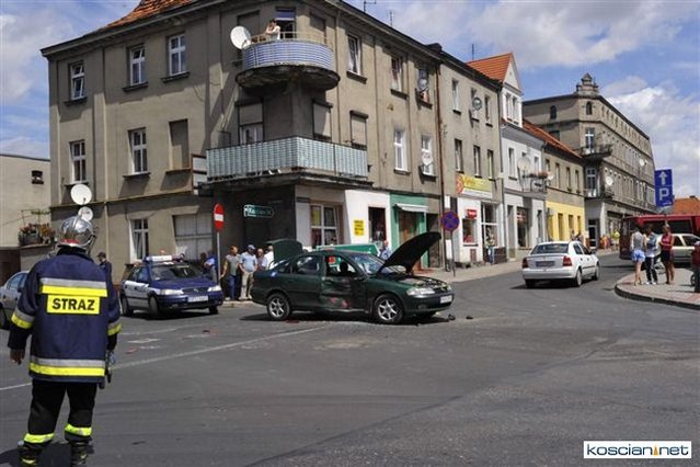 Na skrzyżowaniu ulic Matejki i Kilińskiego w Śmiglu wyjeżdżające spod znaku „stop” ciężarowe volvo uderzyło w bok jadącego główną ulicą osobowego opla. Kierowcę osobówki z urazem głowy odwieziono do kościańskiego szpitala.