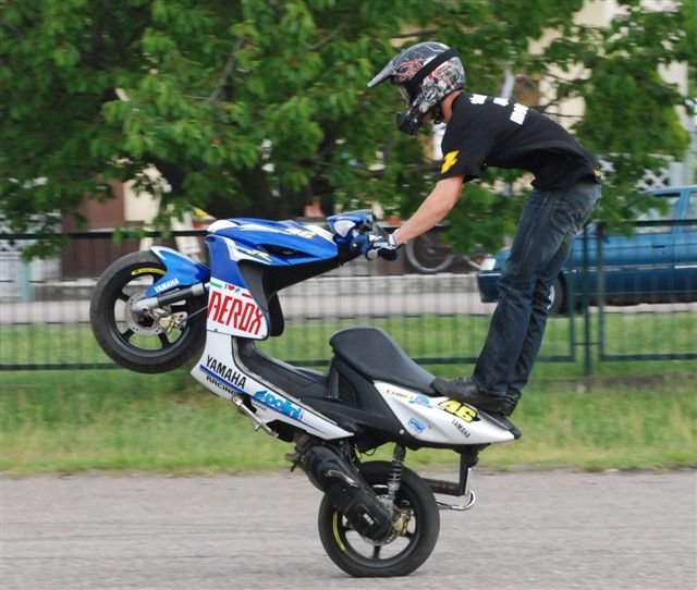 Prawdziwy pokaz to dał Maciej na sliderku;) Kolega na roxie nie pokazał zbyt wiele, a jazda na kole była głownie zaslugą mocy skutera, widac bylo ze wystarczylo delikatnie go poderwac i z gazu na gumie stawał. Szkoda ze nie było sprawnościówki;p