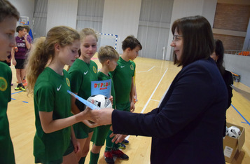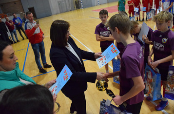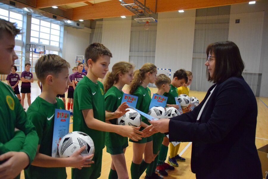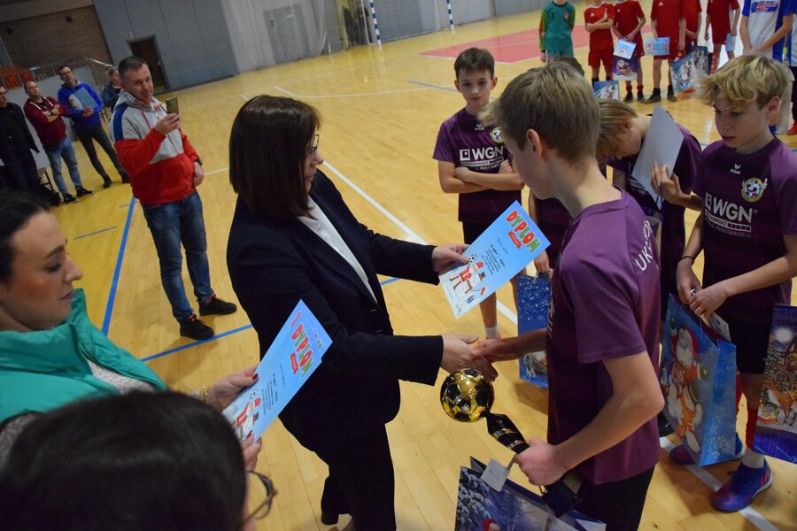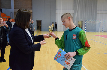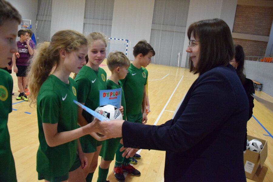 Puchar zwycięskiej drużynie, nagrody, dyplomy i gratulacje wręczyła wicestarosta Dorota Słowińska.