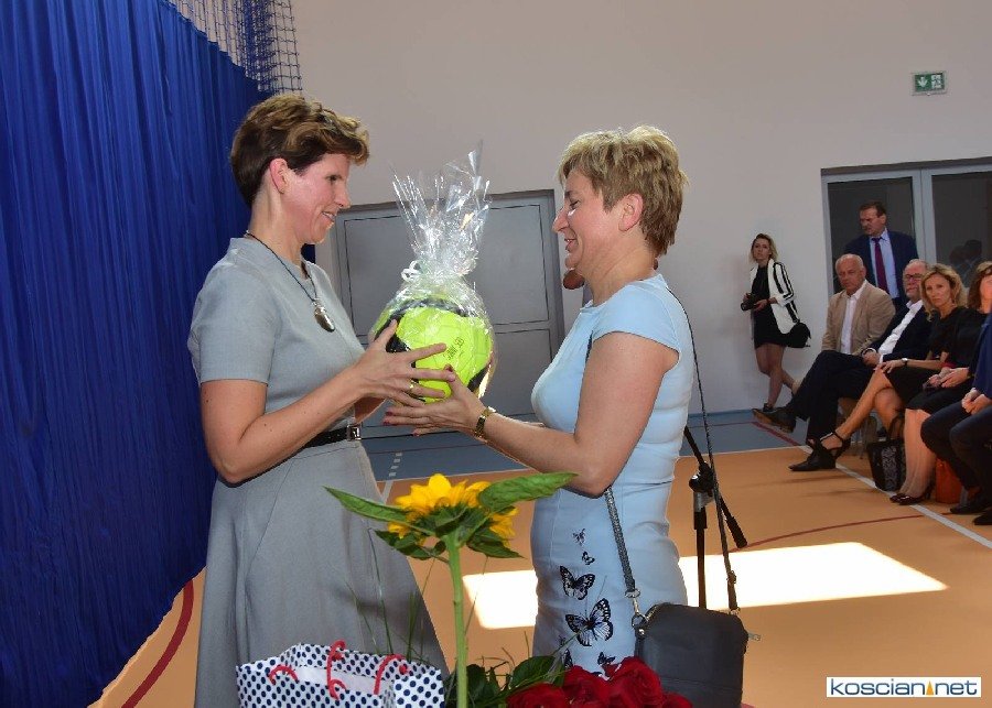 Tak ogromną dotację do budowy tej wspaniałej sali gimnastycznej udało się uzyskać dzięki współpracy z Urzędem Marszałkowskim i m. in. dyrektorem departamentu szkolnictwa p. Dorotą Kinal, widoczną na zdjęciu. Wiele inwestycji w powiecie otrzymało ogromne dotacje dzięki doskonałej współpracy gmin i starostwa z Urzędem Marszałkowskim w Poznaniu.