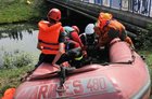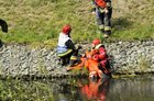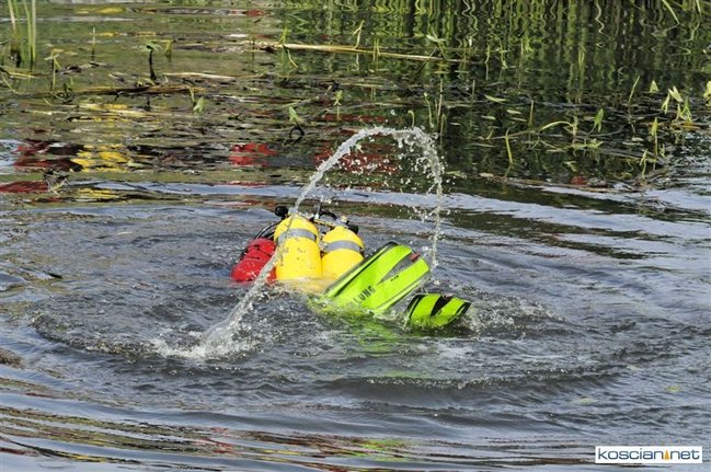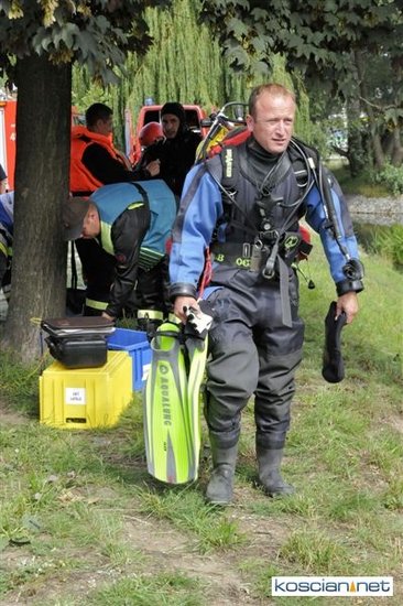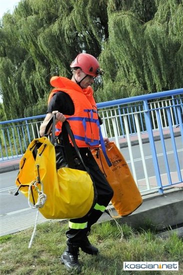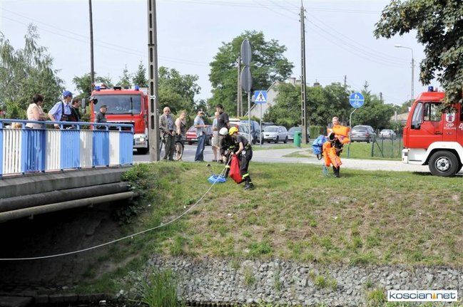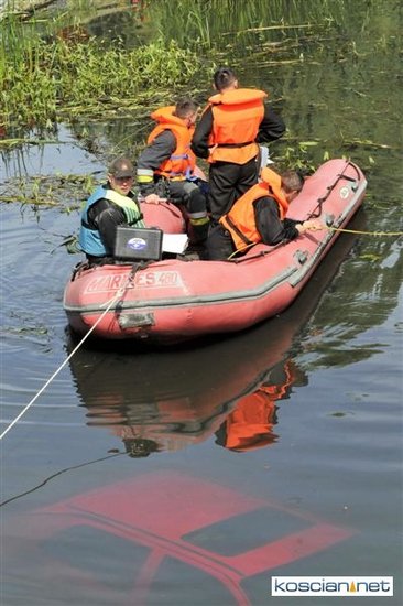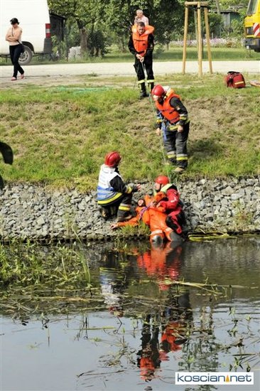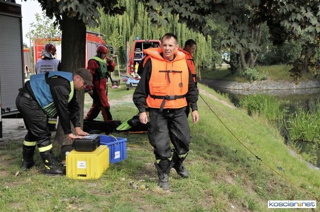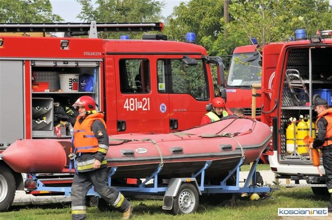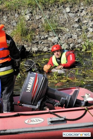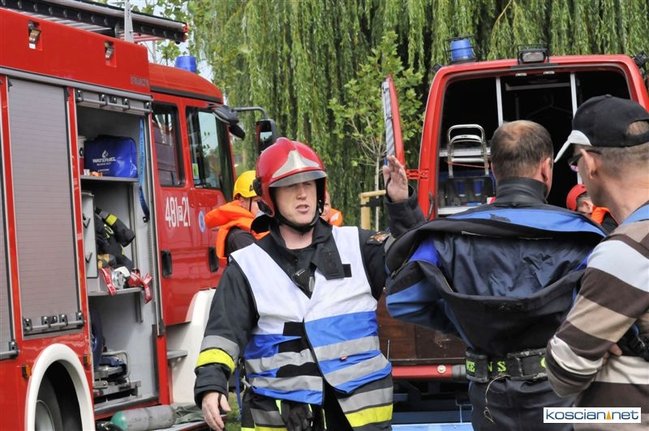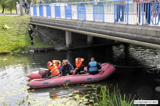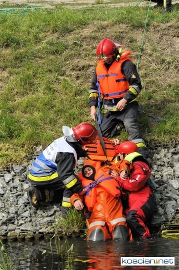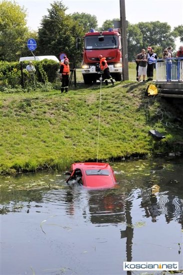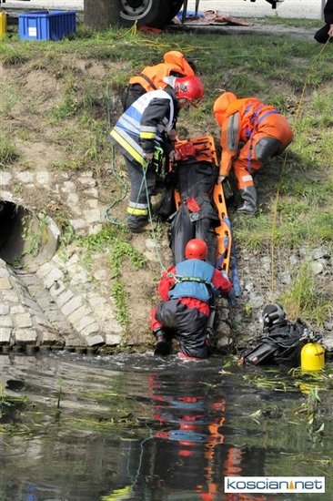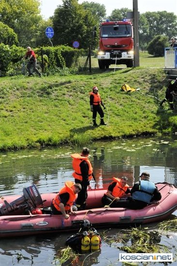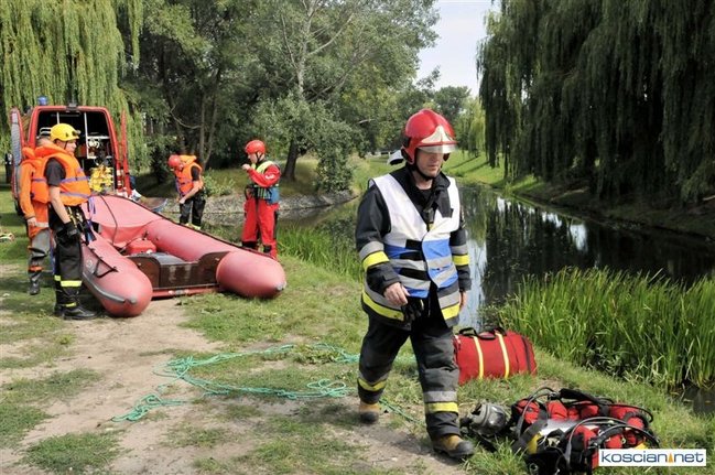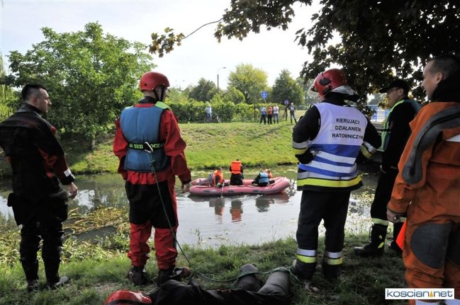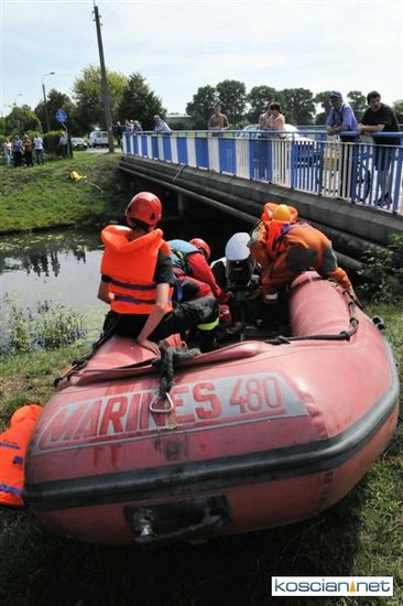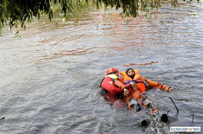 Podczas sobotnich ćwiczeń zawodowi strażacy z PSP Kościan i ochotnicy z OSP Kościan ratowali ludzi, którzy z samochodem wpadli do wody. Ratownicy przeszukali koryto rzeki, podjęli z wody dziecko i dwie osoby dorosłe oraz wyciągnęli zatopiony samochód.