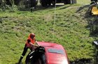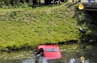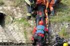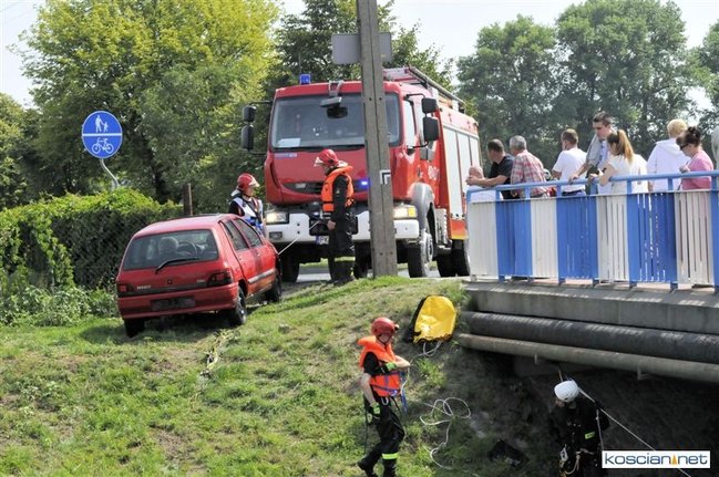 Przy moście na ulicy Łąkowej w Kościanie strażacy wyciągali z wody samochód i troje pasażerów.