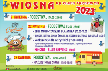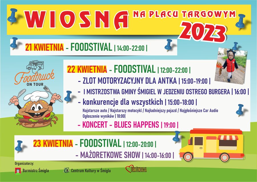 Pierwszego dnia na Placu Targowym rozstawiły się food trucki, a ich załogi serwowały specjalności firmy. W sobotę odbył się zlot motoryzacyjny, który przyciągnął właścicieli oryginalnych quadów, motocykli i samochodów. Podczas imprezy kwestowano na rzecz Antka Bartkowiaka cierpiącego na mastocytozę. Przeprowadzono także Mistrzostwa Gminy Śmigiel w jedzeniu ostrego burgera na czas. Imprezę zakończył koncert zespołu Blues Happens.