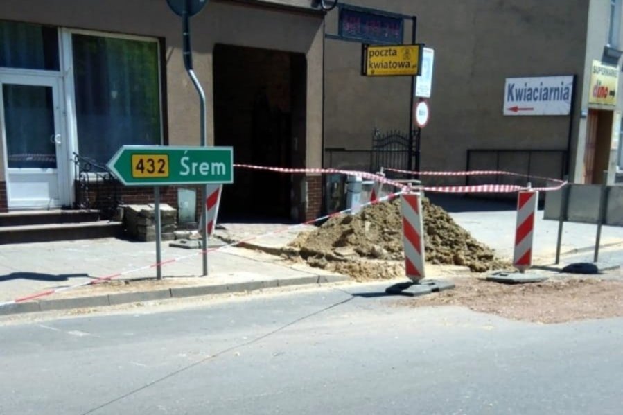 Podczas prac ziemnych na ulicy Kościańskiej w Krzywiniu znaleziono niewybuch.
