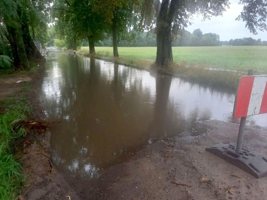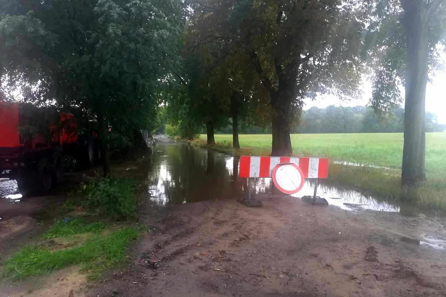 Spore szkody deszcz wywołał także na remontowanej ulicy Sokolniczej w Czempiniu. W korytowanej drodze woda wymyła podsypkę na długości ponad 40 metrów. Nad ranem woda miała w tym miejscu głębokość 52 cm.