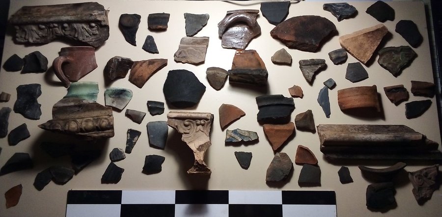 W trakcie badań natrafiono na pozostałości obiektów budowlanych i fragmenty ceramiki. Najstarsze można datować na okres średniowiecza. Natrafiono także na liczne fragmenty różnokolorowych zdobionych kafli piecowych i monetę z czasów Jana Kazimierza. Ciekawostką jest cegła z odciskami palców.