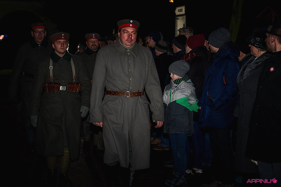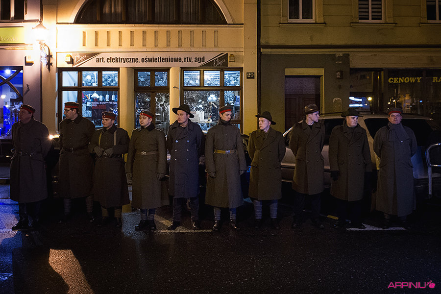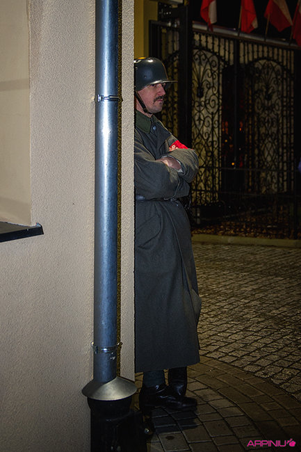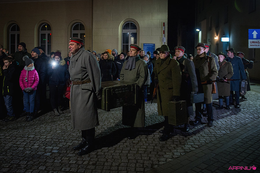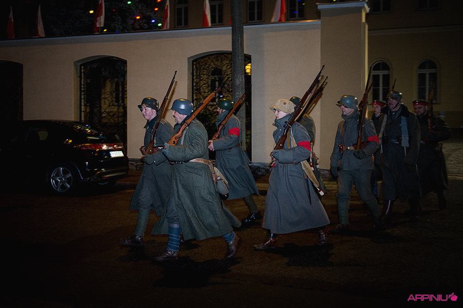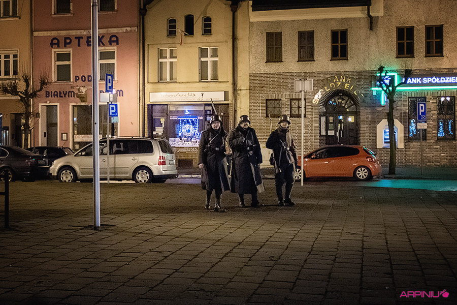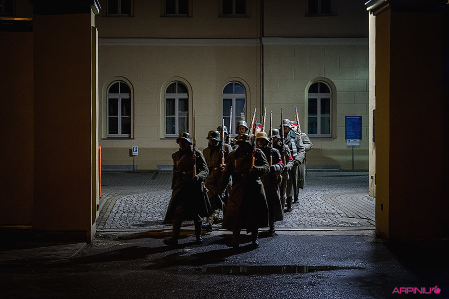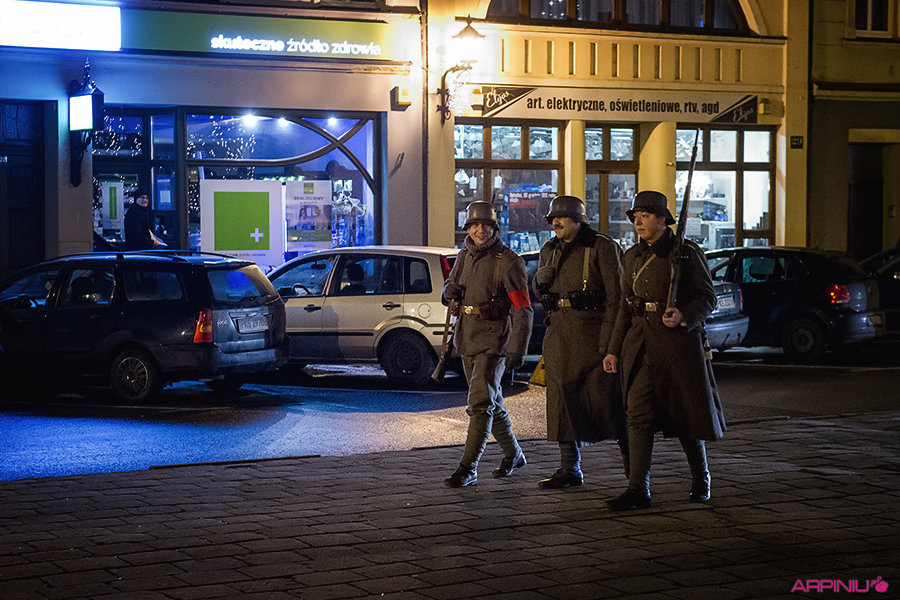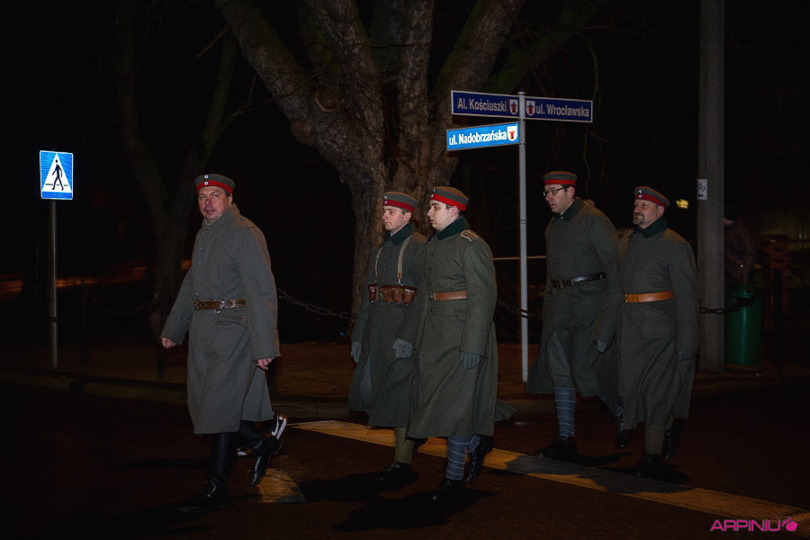 O północy wszyscy ruszyli do sanatorium, na terenie którego przed stu laty mieścił się garnizon 37. Pułku Piechoty. Idąc z Rynku na Al. Kościuszki grupa kilkukrotnie zatrzymywała się, by wysłuchać kolejnych informacji o miejscach, osobach i wydarzeniach sprzed wieku. W rolę przewodnika wcielił się Dariusz Kram, dyrektor kościańskiego muzeum.