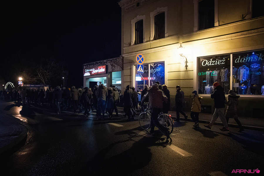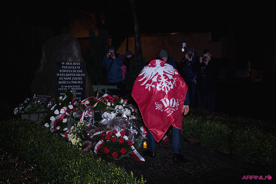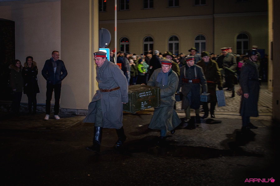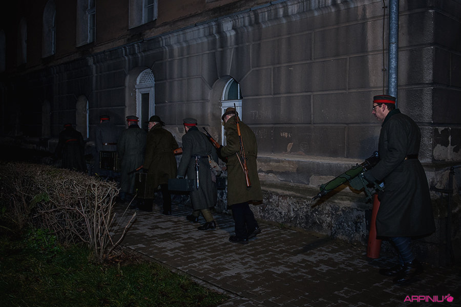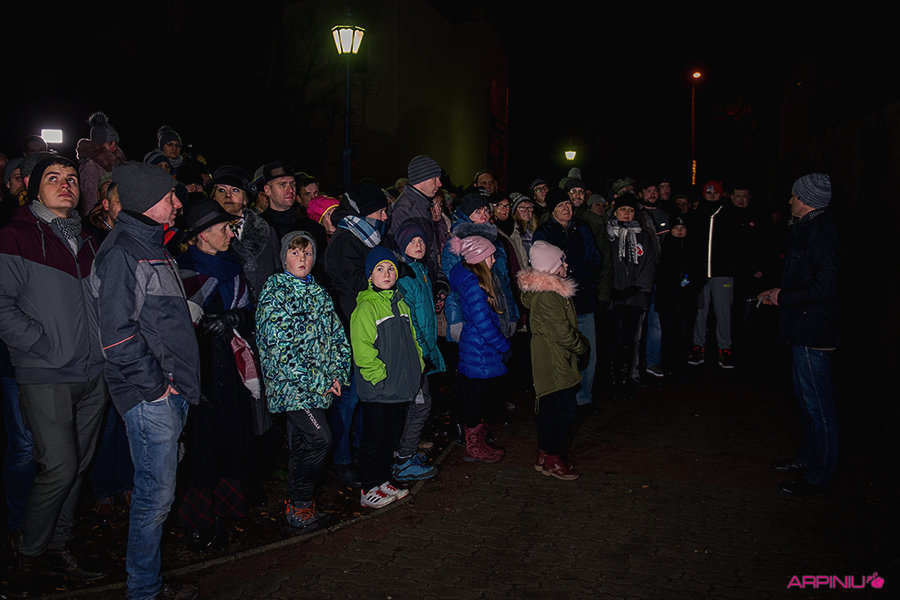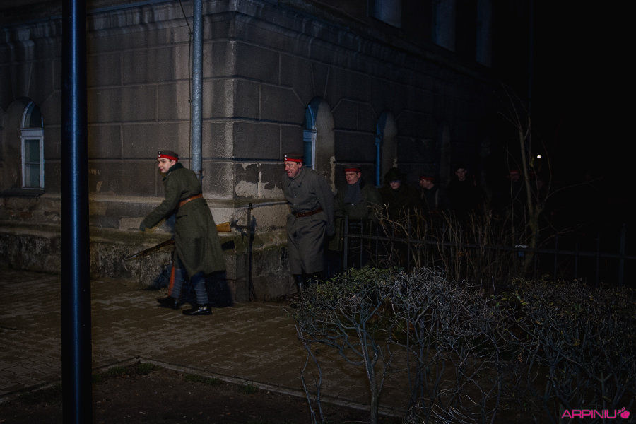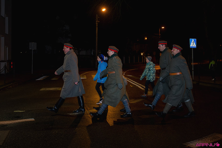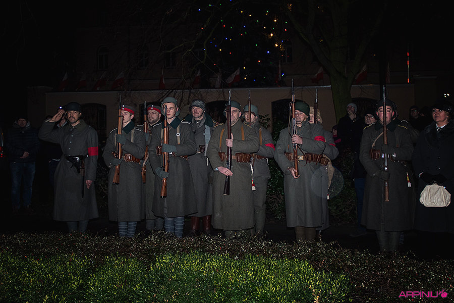 O północy wszyscy ruszyli do sanatorium, na terenie którego przed stu laty mieścił się garnizon 37. Pułku Piechoty. Idąc z Rynku na Al. Kościuszki grupa kilkukrotnie zatrzymywała się, by wysłuchać kolejnych informacji o miejscach, osobach i wydarzeniach sprzed wieku. W rolę przewodnika wcielił się Dariusz Kram, dyrektor kościańskiego muzeum.