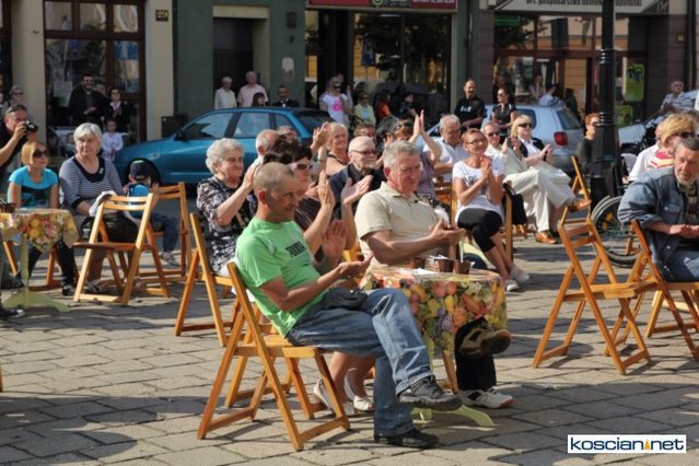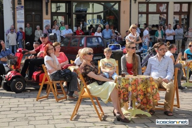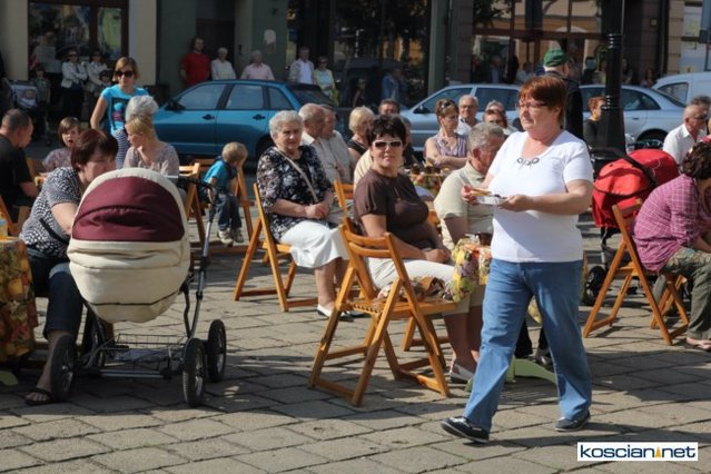 Wielu kościaniaków skorzystało z zaproszenia na recital przegryzany darmową kiełbasą i kaszanką. W gorące niedzielne popołudnie na Rynku stanęła oberża serwująca dwie potrawy z grilla. Gości zabawiali artyści wykonujący arie operowe i operetkowe.