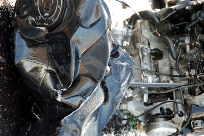 Siła uderzenia przełamała motor na dwie części. Pomimo podjętej reanimacji motocyklista zamarł. Mężczyzna jechał bez kasku.