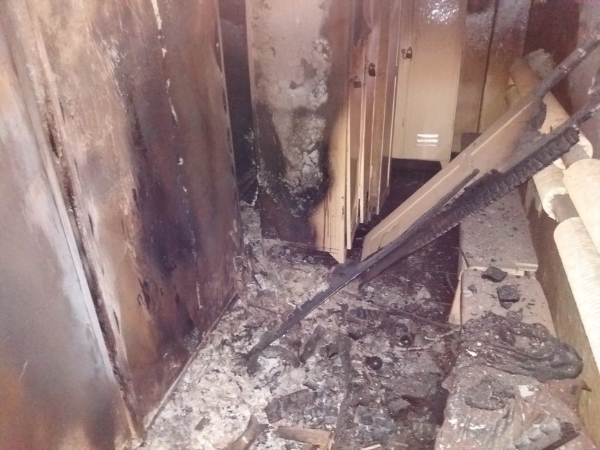 Okazało się, że do pożaru doszło w budynku produkcyjnym z wydzieloną częścią socjalną. Spłonęło kilka szafek odzieżowych w szatni. W jednym z sąsiednich pomieszczeń znajdowały się zwłoki mężczyzny a okoliczności wskazywały, że nie żył od kilu godzin. Urządzenia kontrolne wskazały obecność tlenku węgla na poziomie ok. 30 ppm ale po zastosowaniu wentylacji stężenie szybko spadło. W szatni, w której doszło do pożaru temperatura nie była podwyższona a ściany i wyposażenie były już chłodne. Kamera termowizyjna nie wskazała zarzewi ognia, które wymagałyby działań gaśniczych. Tak więc skłania to do stwierdzenia, że ogień wybuchł nocą i nie był gwałtowny. Spalanie ustało z powodu obniżenia poziomu tlenu. Silne okopcenia w pomieszczeniach oraz duża ilość sadzy są też dowodem tego, że spalanie odbywało się w deficycie utleniacza.