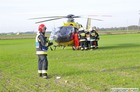 Po 2 minutach do strażaków dołączyły siły Państwowego Ratownictwa Medycznego. Ratownicy medyczni przeprowadzili segregację poszkodowanych ustalając ich priorytety transportowe. Przejęli także działania przy najciężej rannej kobiecie. W miarę przybywania kolejnych zastępów straży pożarnych i zespołów ratownictwa medycznego sytuacja się stabilizowała. Niestety lekarz stwierdził zgon najciężej rannej kobiety leżącej na poboczu. Do transportu do szpitala kobiety uwolnionej z busa wezwano śmigłowiec Lotniczego Pogotowia Ratunkowego a strażacy wyznaczyli i zabezpieczyli lądowisko.