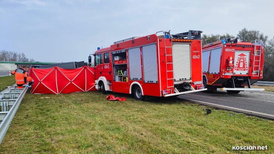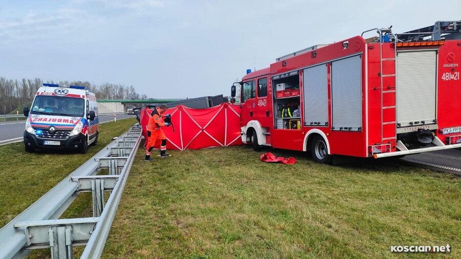 Pomiędzy węzłami Kościan Północ i Czempiń doszło do wypadku, w którym zginął 39-letni kierowca.