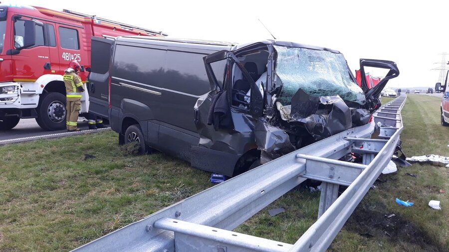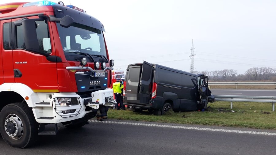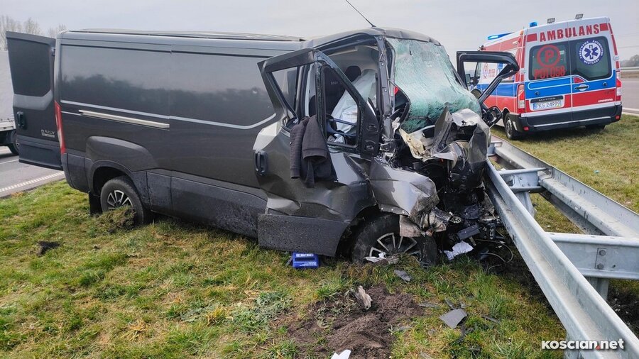 - Ze wstępnych ustaleń wynika, że jadący lewym pasem, 39-letni kierowca busa iveco, z nieustalonych przyczyn zjechał na prawy pas ruchu i uderzył w tył naczepy niskopodwoziowej, a następnie w bariery energochłonne – informuje Jarosław Lemański, oficer prasowy KPP w Kościanie.