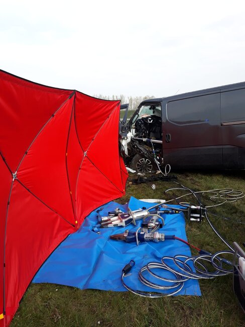Przybyli na miejsce strażacy, przy pomocy narzędzi hydraulicznych wydostali zakleszczonego w samochodzie kierowcę. Na miejsce wezwano karetkę i śmigłowiec Lotniczego Pogotowia Ratunkowego. Pomimo trwającej kilkadziesiąt minut resuscytacji krążeniowo-oddechowej mężczyzny nie udało się uratować.