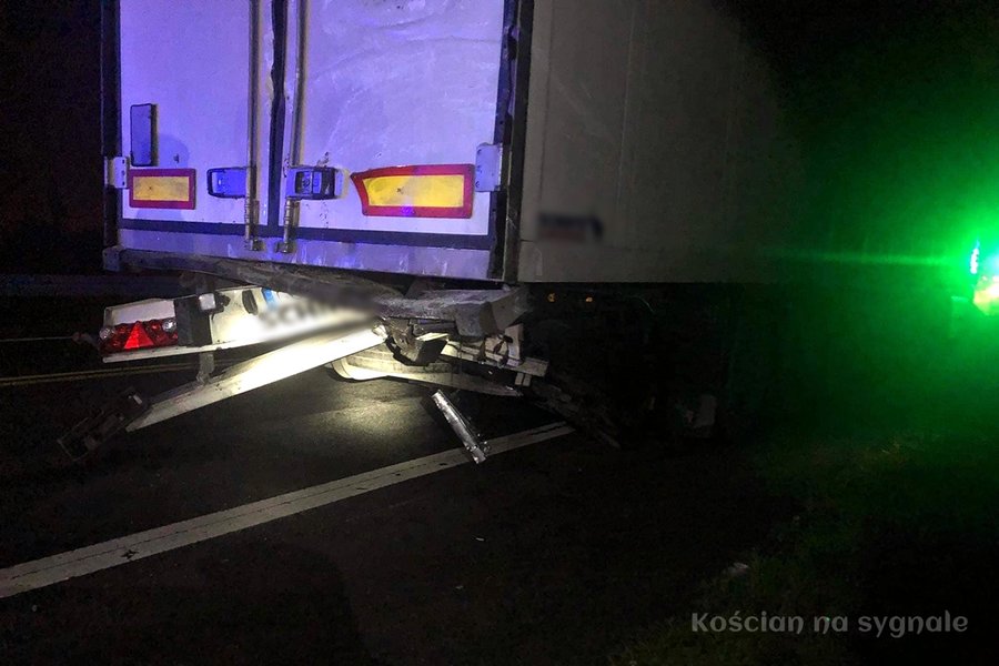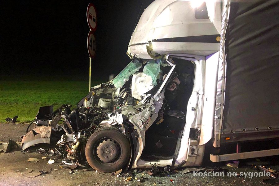 Do wypadku doszło w środę, 20 listopada, około godziny 23.30 na obwodnicy Kościana pomiędzy stacją benzynową Total, a budowanym rondem. Kierujący dostawczym renaultem, 33-latek najechał na tył poprzedzającego go ciągnika siodłowego z naczepą. Aby wydobyć kierowcę z rozbitego renaulta konieczne było użycie sprzętu hydraulicznego. W wyniku odniesionych obrażeń mężczyzna zmarł kilka godzin później w szpitalu.